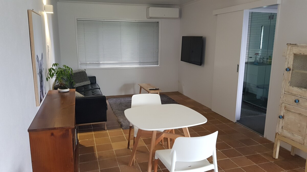 Escapade en bord de mer climatisée dans une impasse privée. Suite élégante avec entrée privée, salon et jardin. Chambre Queen avec salle de bain moderne. Réveillez-vous au son de l'océan, promenez-vous sur une piste privée de 50 m jusqu'à la plage peu fréquentée de Bokarina. Marchez ou faites du vélo sur le sentier côtier ombragé, entouré par la nature et avec vue sur l'océan. Profitez du coucher de soleil depuis votre jardin privé. Stationnement facile dans la rue. Proche du stade, des cafés, de l'épicerie fine, des restaurants, du marché fermier et de l'hôpital. Bus à 3 min à pied.