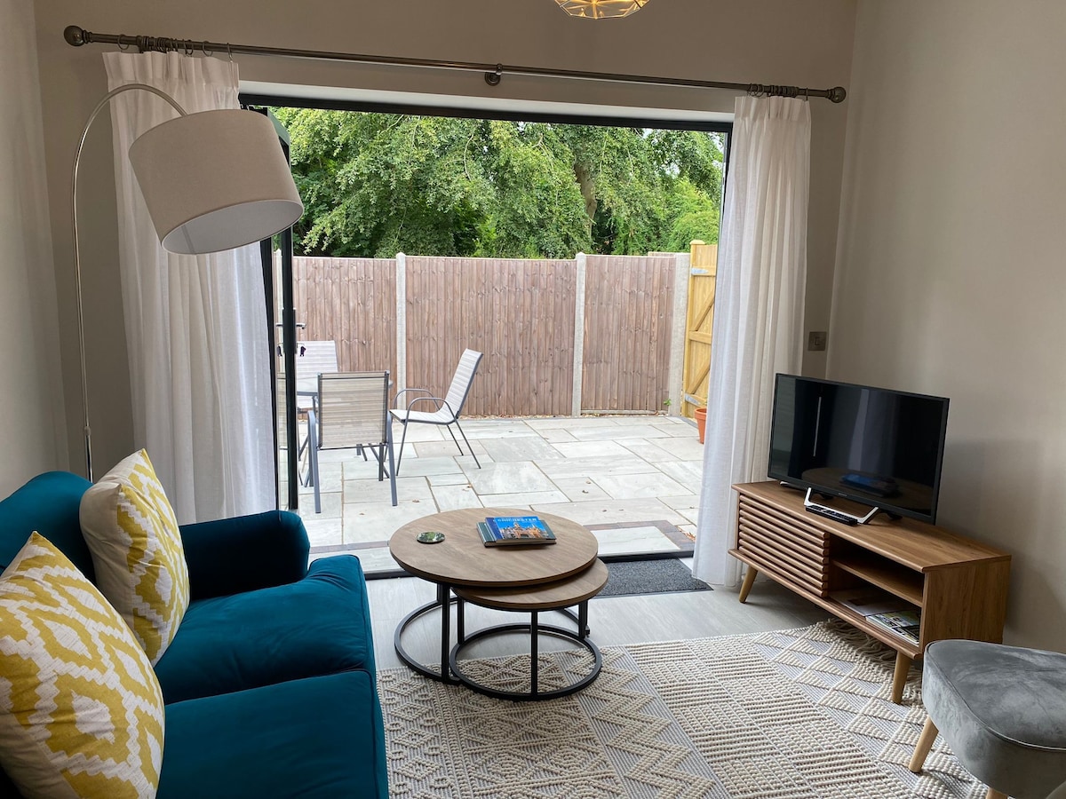 The Tack Room - stylish self contained annexe with open plan living and kitchen, shower room with separate bedroom and secure parking within a gated driveway. Located 6 miles east of Chichester and Goodwood - easy access to both; close to Arundel, the South Downs National Park and perfectly situated to explore the beautiful countryside and beaches of the south coast. Fontwell racecourse is within easy walking distance.