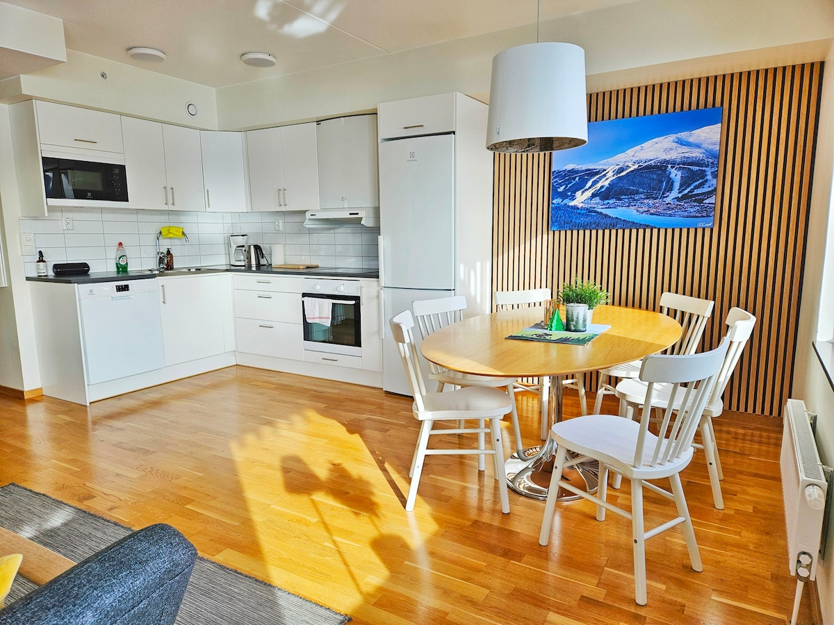 Appartement élégant et frais à Tegefjäll, Åre. À distance de marche de la piste et du restaurant, l'appartement offre la combinaison parfaite de proximité des activités tout en se détendant. Grande et moderne cuisine avec des appareils élégants. Très bel appartement pour le couple qui monte et skie ou pour ceux qui recherchent la détente dans le calme Tegefjäll. L'appartement comprend : cafetière Armoire de séchage. WiFi. Lavage de la vaisselle Lave-linge avec sèche-linge intégré Magasin de ski Dressing/espace de travail