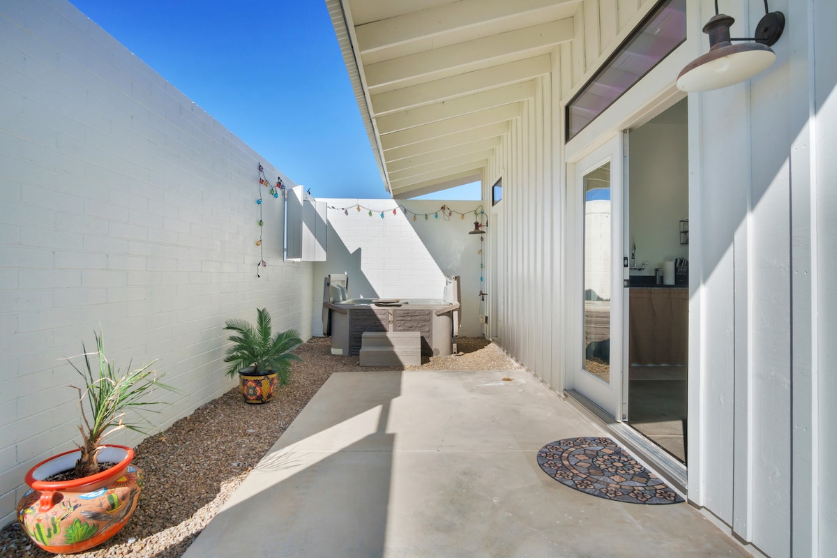 Unlike dense vacation developments, this barn sits on five private desert acres with uninterrupted views, dark skies, and quiet - the kind most travelers never realize is rare until they arrive Escape to our unique desert studio just 2.6 miles from Saguaro National Park. Enjoy your own private courtyard with a hot tub and grill. This rustic-modern space comfortably fits up to 4 guests with a queen bed and pull-out sofa. Experience desert tranquility with hosts who genuinely care about your stay
