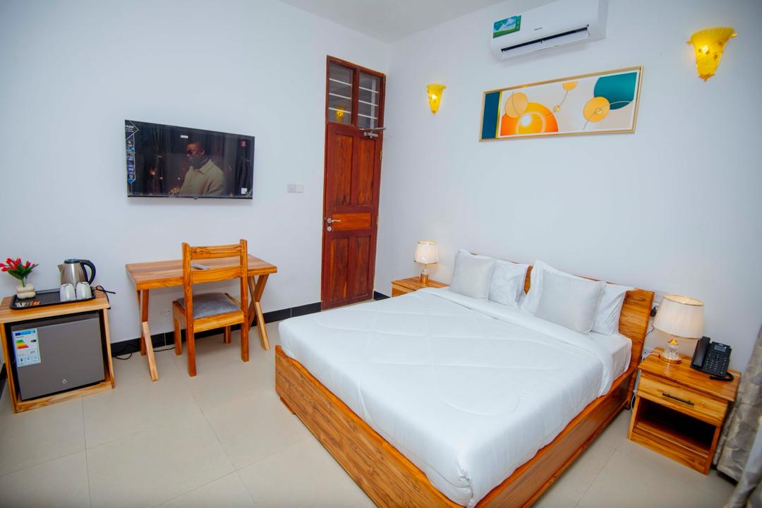 Zanzicrown hôtel offre à ses clients des chambres élégantes et bien décorées. La chambre est équipée de la climatisation, ventilateur, eau chaude, sèche cheveux, penderie, tables de chevet et moustiquaire. Le petit déjeuner est toujours compris dans le prix. Il dispose également de plusieurs espaces de détente, jardin, piscine, terrasses et rooftop view. Nous sommes à quelques mètres de la plage de Nungwi, dans une zone bien équipée et proche de toutes sortes d'activités ! Le personnel est entièrement disponible pour organiser des excursions.
