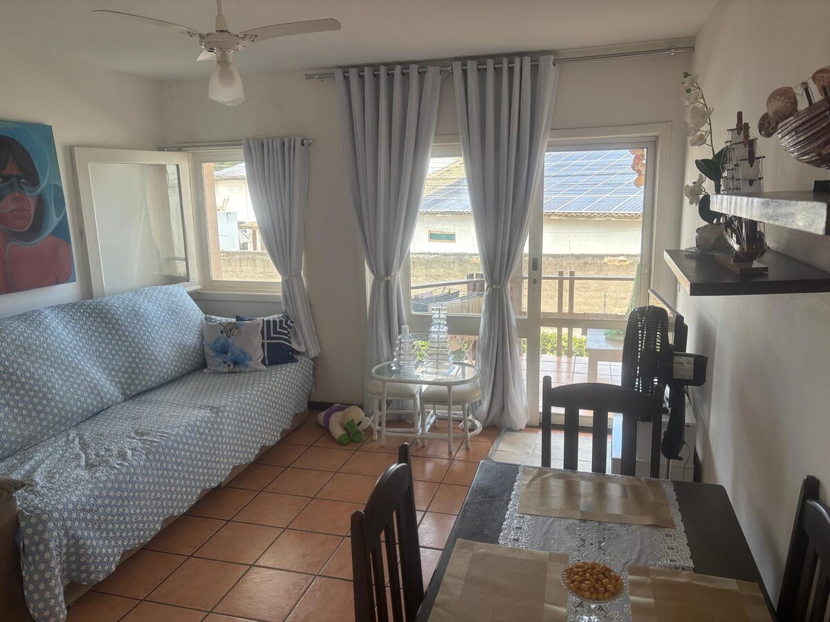 Appartement complet confortable pour 2/3 personnes, dans une belle et calme communauté fermée, très bien situé dans le centre d'Arraial d'Ajuda, très proche de plusieurs types de commerces et de la charmante Rua do Mucugê (5 min à pied), et vous pouvez laisser la voiture dans le parking et vous promener à la fois pendant la journée et la nuit !!! L'appartement est construit sur une zone irrégulière, il y a donc un escalier le long du chemin qui mène à l'appartement (non recommandé pour les personnes âgées).