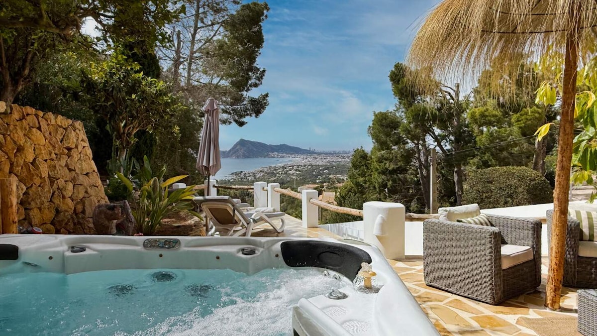 Belle maisonnette indépendante idéale pour profiter en couple. Avec une intimité absolue, une vue imprenable sur la mer Méditerranée, le soleil toute la journée, le jacuzzi extérieur, le jardin avec des arbres fruitiers et des fleurs et à 5 min de la plage en voiture. Il a tout ce dont vous avez besoin : Cuisine entièrement équipée, espace barbecue à gaz Weber, SmartTV avec Netflix, lit Kingsize dans la chambre , …Et un charme qui tombe amoureux de tous nos clients.