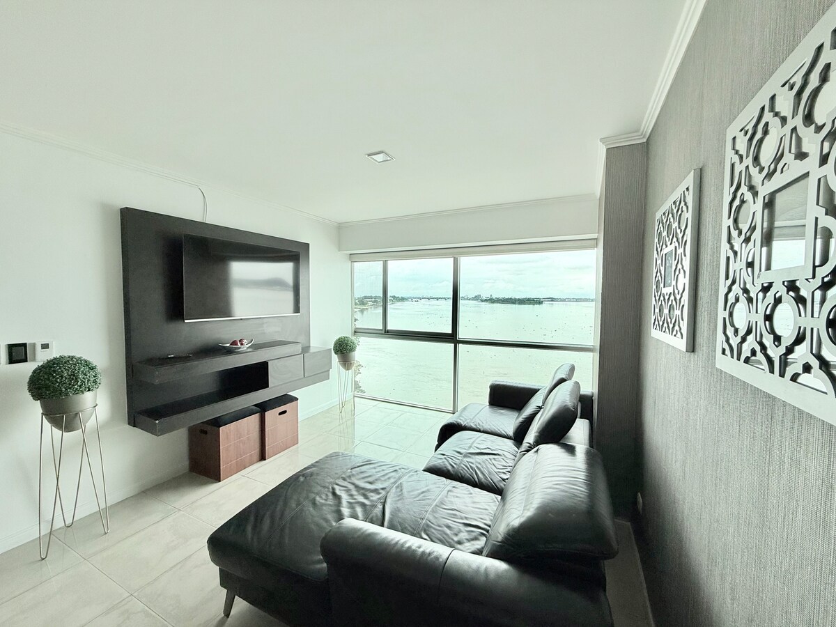 Suite confortable avec vue panoramique sur la rivière Guayas. Il est situé dans le meilleur quartier résidentiel et commercial de la ville de Guayaquil. À 5 minutes de l'aéroport et à 3 minutes du terminal terrestre, vous pouvez vous rendre à pied aux restaurants, bars et supermarchés, le secteur dispose de caméras de sécurité, sécurité privée, police nationale et concierge 24h/24 dans l'immeuble et ses environs. Le bâtiment dispose d'un grand espace social avec piscine, jacuzzi, sauna et salle de sport. LES VISITEURS NE SONT PAS AUTORISÉS
