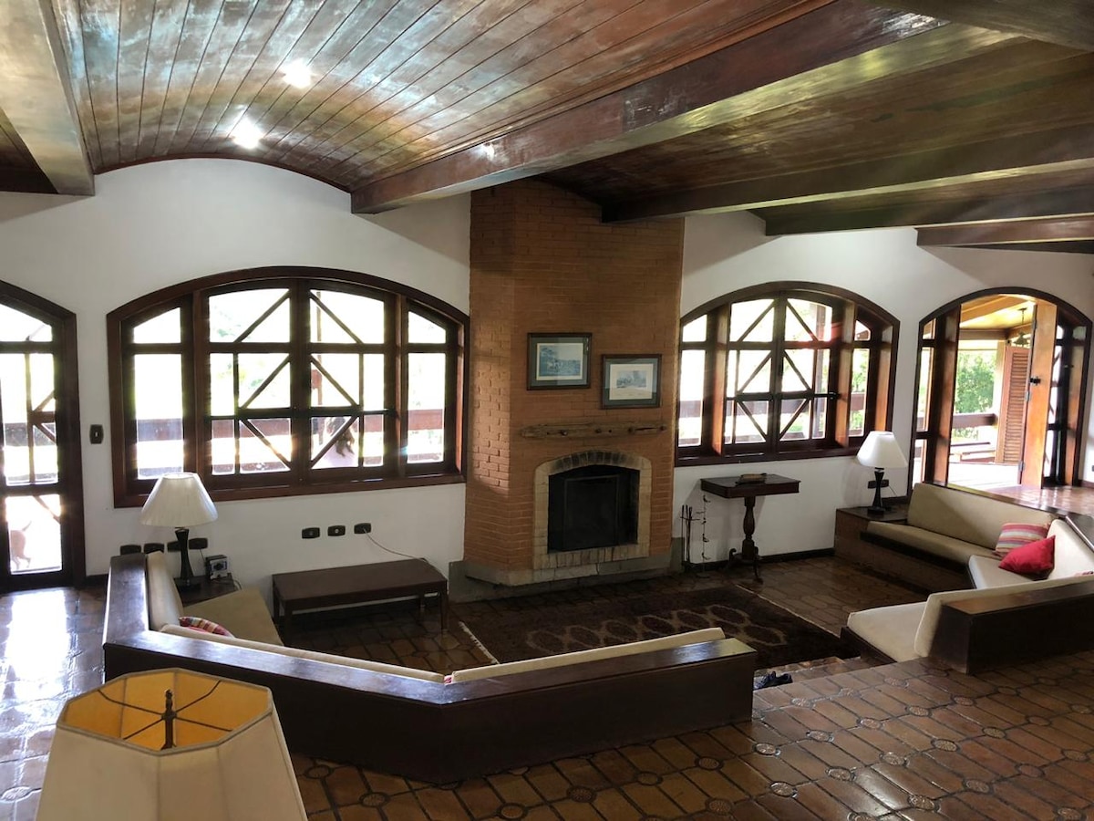 Belle maison avec piscine, barbecue, cuisine gastronomique et hébergement, c'est l'endroit idéal. Nous sommes situés dans l'arrière-pays de Caçapava SP avec un espace vert pour vous, votre famille, vos amis et votre animal de compagnie. L'espace dispose de 400 m² de superficie avec une belle maison et un balcon de 100 m², nous avons une clôture électrique installée autour du périmètre du site pour assurer la sécurité. Vous qui cherchez le calme ou même des célébrations, du plaisir, des anniversaires, ici vous aurez une expérience merveilleuse avec votre famille.