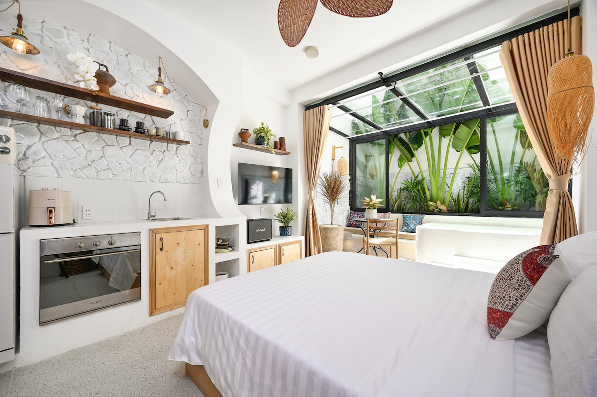 Établi en 2023, nous proposons des appartements de haute qualité à court et à long terme situés juste sur une rue animée avec des cafés célèbres, des restaurants, Circle K et des magasins pratiques à proximité et à quelques minutes à pied de la rue piétonne Bui Vien, du parc Tao Dan. Rentables par rapport aux hôtels, nous fournissons des appartements 1 BR avec intimité, style moderne, cuisine, balcon, porte et fenêtres insonorisées, espace de bureau pour travailler, jardin sur le toit, ascenseur, nettoyage régulier et le confort d'un « Home-from-Home ».