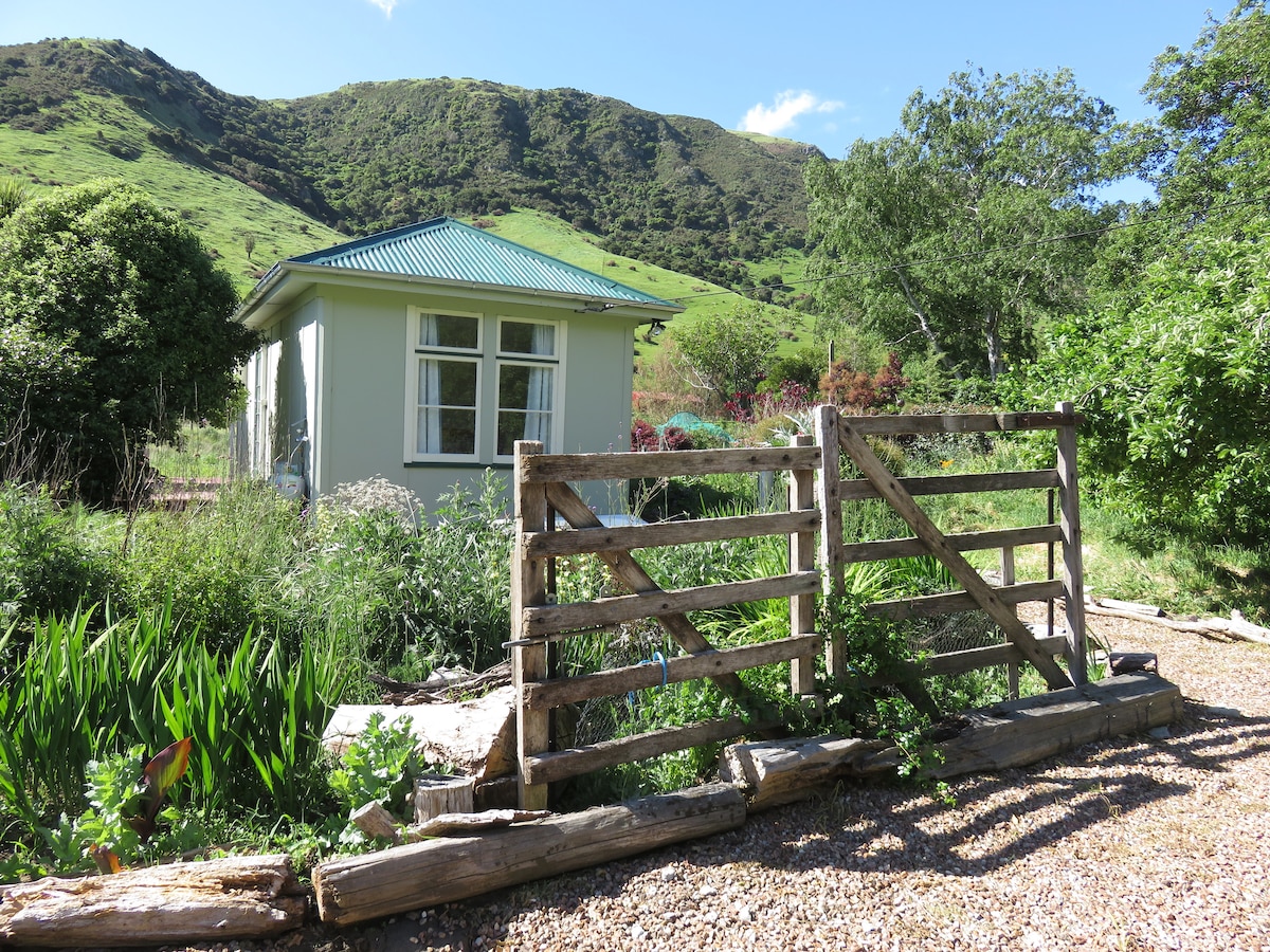 Chalet de la péninsule de Banks, paisible, privé et indépendant, niché dans la belle vallée de Kaituna près de Christchurch sur la péninsule de Banks. Profitez du chant des oiseaux, du bruit du ruisseau et de vues imprenables. Visitez Akaroa, faites de la randonnée sur le sentier Pack Horse, cherchez des pierres à Birdlings Flat, faites du vélo sur la piste ferroviaire ou détendez-vous. Pompe à chaleur, Wi-Fi gratuit, rapide et illimité. Décoré avec une ambiance rétro. À seulement 45 minutes de l'aéroport de Christchurch, mais vous êtes dans un autre monde.