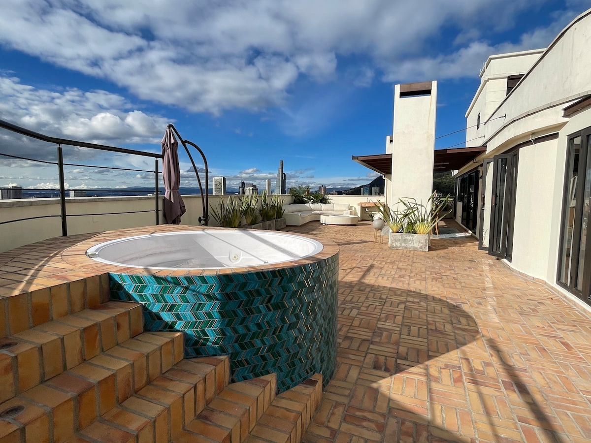 Ce loft est situé au cœur de La Candelaria, le centre historique de Bogotá, au milieu de la culture, des restaurants et des monuments emblématiques. – Terrasse privée avec vue imprenable à 180° sur la ville – Parfait pour les couples, les télétravailleurs ou les voyageurs en solo – Situé dans une résidence sécurisée avec des équipements de type hôtelier Réveillez-vous avec la lumière naturelle, savourez un café sur votre terrasse et terminez la journée avec un verre de vin en admirant la vue sur la ville. À quelques pas de Monserrate, de la place Bolívar, des musées et des meilleurs restaurants de Bogotá.