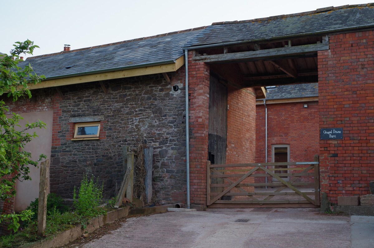 La grange fait partie d'une ferme historique. Elle a été construite en pisé et en pierre au XVIIIe siècle et se trouve dans une vallée paisible, un bel endroit pour s'évader et profiter de la magnifique campagne du Devon. Elle est située en bordure de Dartmoor et à côté de la Two Moors Way. Le joli village de Drewsteignton est à quelques kilomètres avec son pub The Drewe Arms. Le château Drogo du National Trust est à un demi-mille au-delà. Le domaine de Drogo offre de belles promenades le long de la rivière Teign.