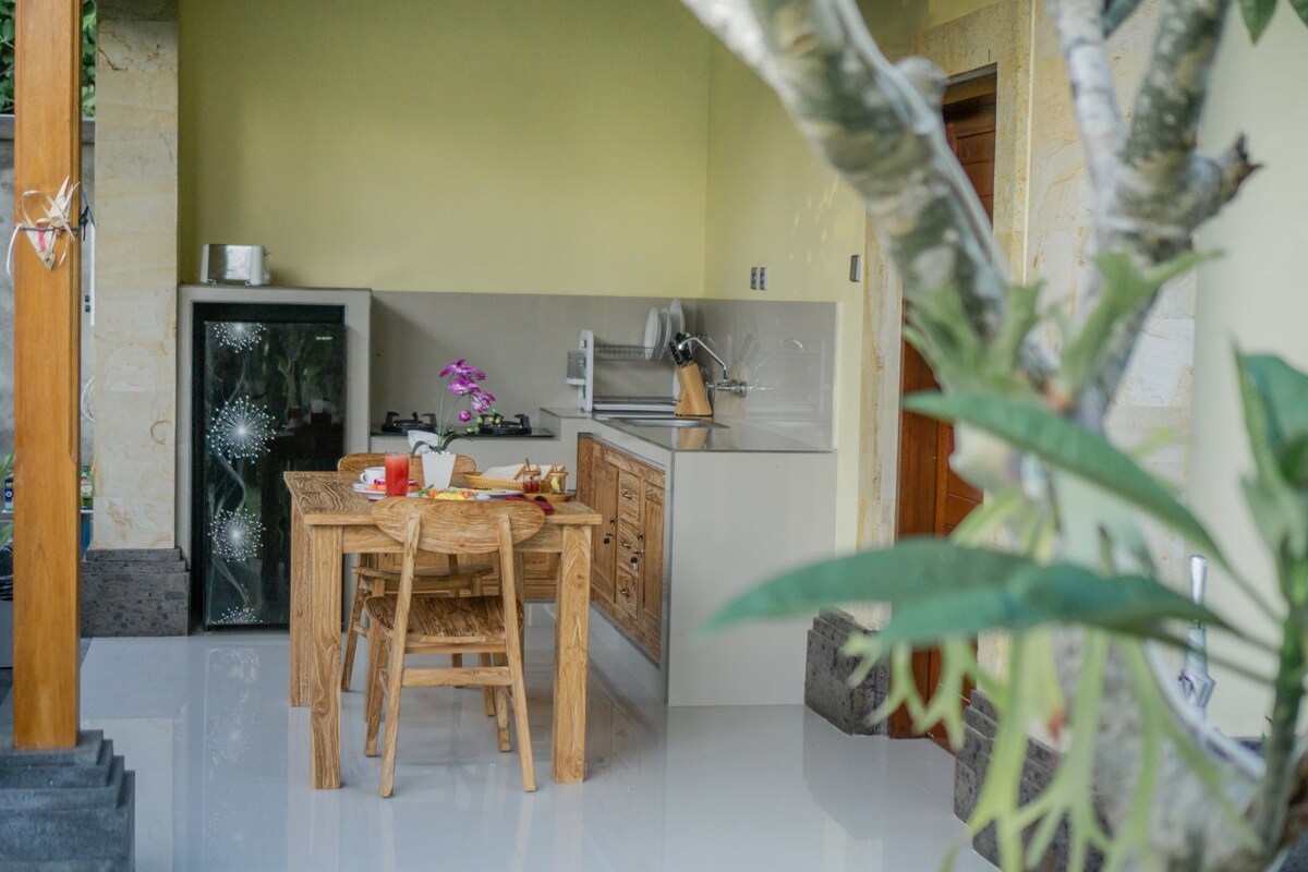 Pourquoi vous allez adorer : 1. Allée calme, à quelques minutes du centre d'Ubud 2. Balcon privé avec vue sur la nature 3. Petit déjeuner gratuit livré tous les jours 4. Climatisation et lit confortable 5. Wifi rapide + table et chaise, pour le télétravail 6. Salle de bain privée avec douche chaude/froide 7. Parking gratuit pour scooter + accès facile à Grab/Gojek Parfait pour les couples, les voyageurs en solo ou les nomades numériques.