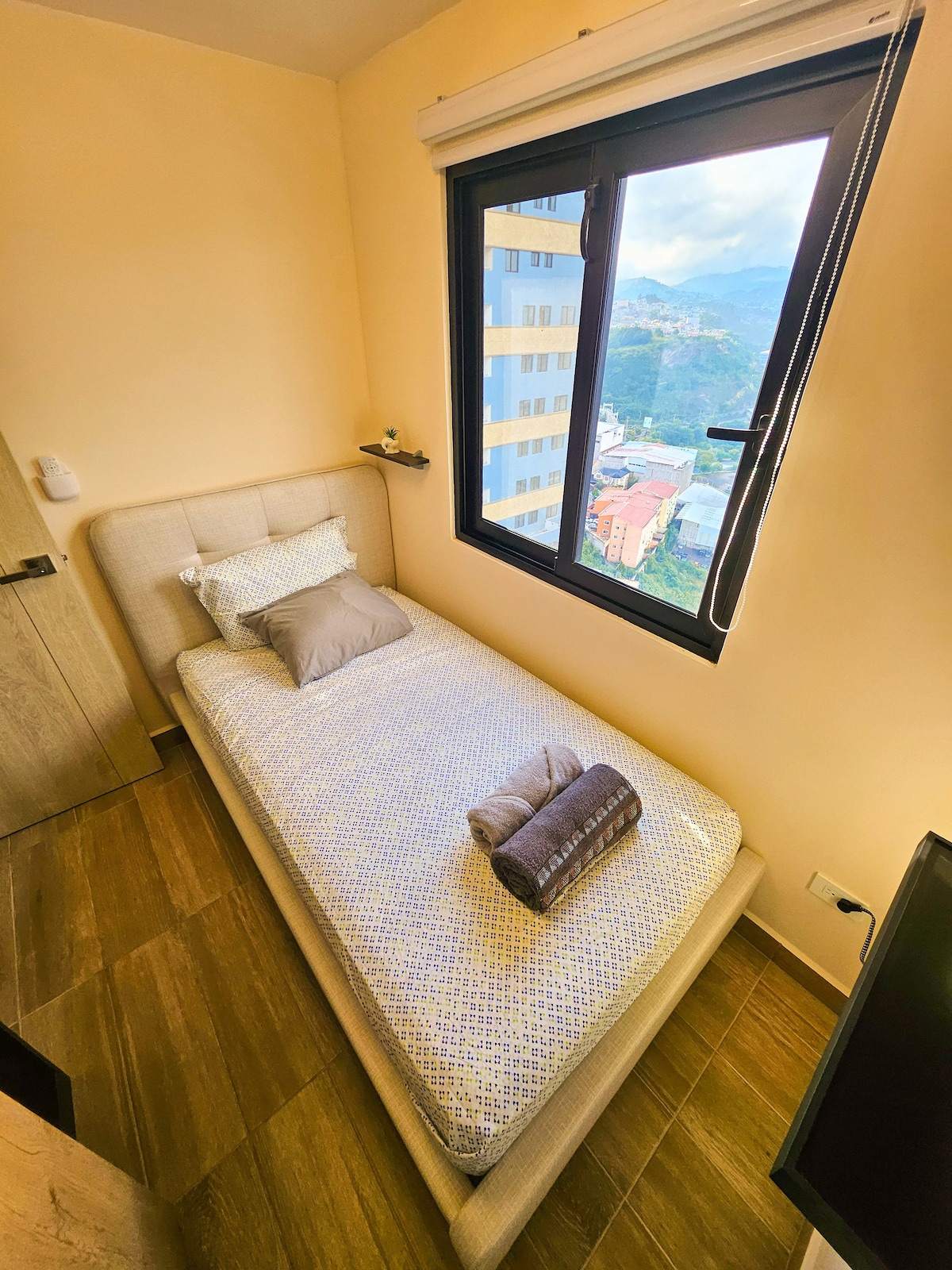 Located at one of the most prestigious areas of Tegucigalpa, on the 4th floor of Building Cipreses San Ignacio. Ideal for business trips, family vacations, etc. The apt counts with 24-hour armed security guards onsite for your safety. The main room has a king size bed, 50-inch TV, private bathroom. The 2nd have a single bed, 43-inch TV and AC. The apt has 2 full baths, a private balcony with the best views in town. Enjoy a stylish experience at this centrally-located place.