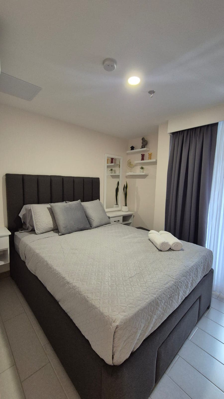 Bienvenue dans votre nouvelle maison ! Charmant appartement d'une chambre spacieuse avec dressing, salon, salle à manger et salle de bain. Le salon est parfait pour se détendre sur un canapé confortable et la télévision. Cuisine entièrement aménagée. Profitez du confort du lave-linge/sèche-linge. Emplacement privilégié et très sûr Derrière l'AMBASSADE AMÉRICAINE. Profitez gratuitement sur la terrasse du 24e étage de la piscine, du jacuzzi, de l'aire de jeux pour enfants Centre commercial dans l'immeuble avec restaurants et de nombreux commerces pour vos achats.