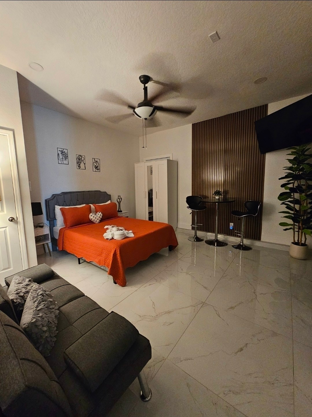 Proche des meilleurs restaurants et divertissements de Tampa ! Notre espace paisible et écologique entièrement rénové comprend une cuisine complète, un lit queen à mémoire de forme et un canapé-lit confortable, parfait pour les couples, les voyageurs en solo ou les petites familles. Marchez jusqu'à une arcade classique et un bar à bière artisanale au bout de la rue, ou explorez un vaste choix de cuisine internationale à proximité. Profitez d'un vaste parking hors rue, d'un patio relaxant et d'un espace non toxique et respectueux de l'environnement.