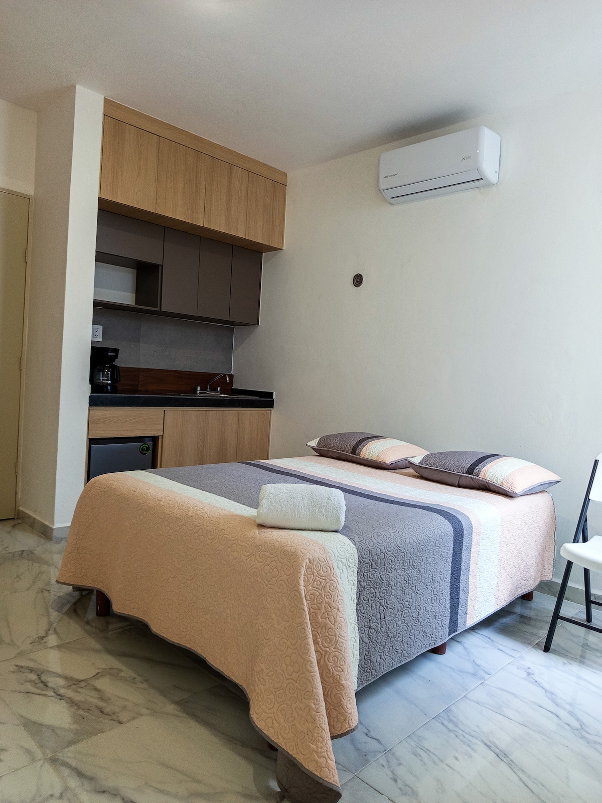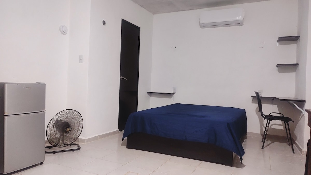 Profitez de toute la résidence, idéale pour les groupes jusqu'à 9 personnes. Il comprend la suite, le studio et la chambre, chacun avec sa salle de bain, sa cuisine et sa kitchenette. En outre, l'accès à un espace social lumineux et parfait pour vivre ensemble. - Capacité pour 9 personnes (3 chambres, 3 salles de bains). - Suite avec cuisine, studio avec cuisine, chambre. - Espace social spacieux et lumineux. - WiFi, climatisation. -Accès indépendant.