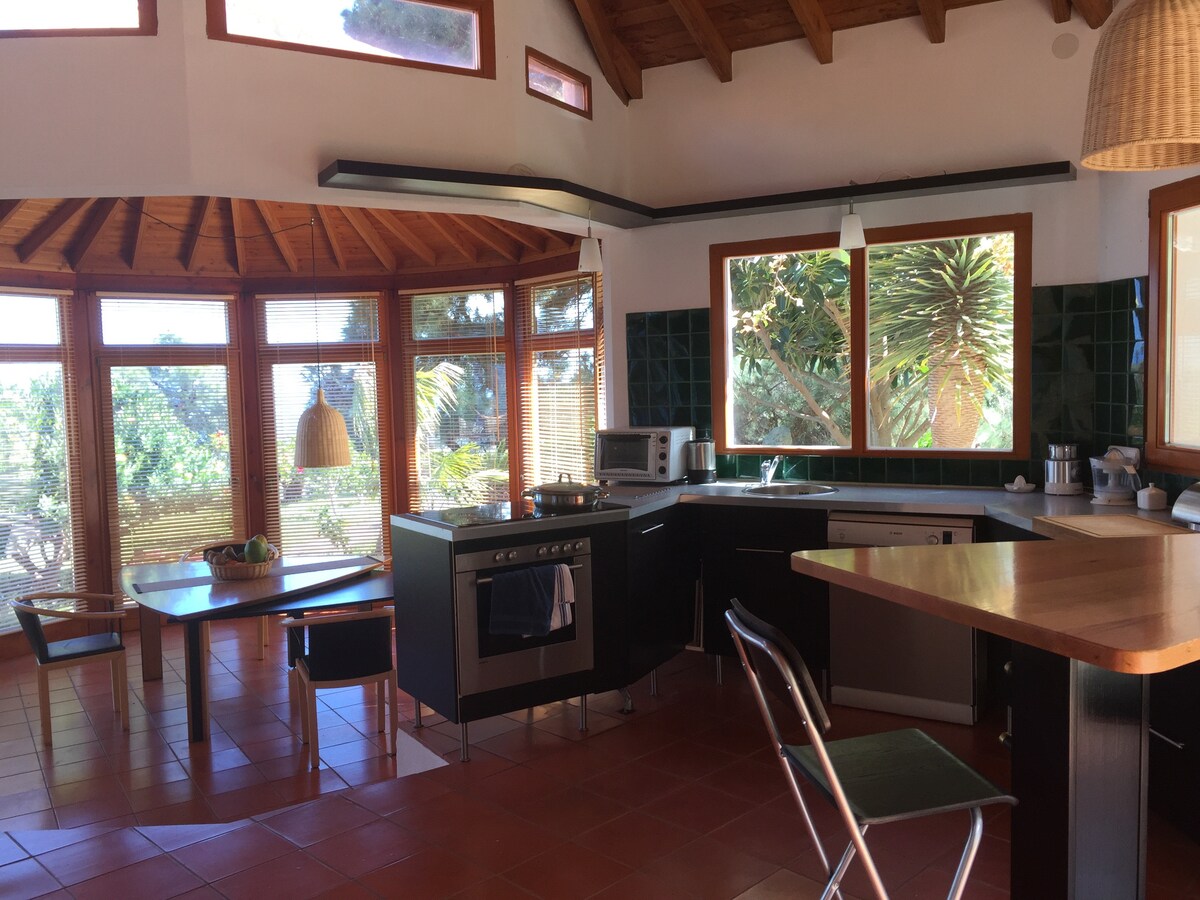 L'endroit idéal pour se détendre et profiter de la isla bonita, du coucher de soleil spectaculaire, de la belle piscine chauffée, du beau ciel étoilé et des sentiers de randonnée qui commencent juste à la porte. Détente pure au milieu de la nature. La maison confortable et élégante est entourée de vieux amandiers, sur 2 hectares de terrain privé au milieu d'une réserve naturelle à Puntagorda à une hauteur d'environ 900 mètres.