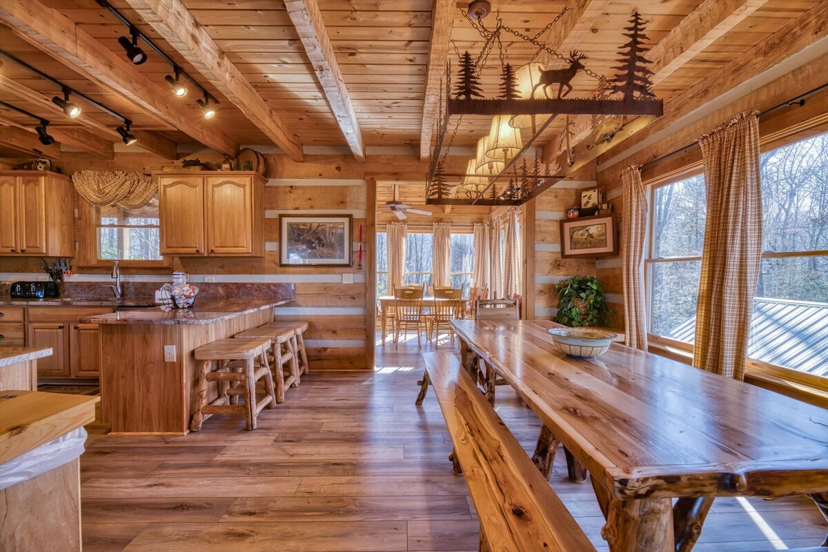 Cette cabane de luxe et destination de mariage est une propriété isolée unique en son genre perchée au-dessus des Smoky Mountains, offrant une vue panoramique à 360 degrés. Cérémonie personnalisée et terrasse d'observation, foyer extérieur et cuisine extérieure. Située sur près de 4 acres, 5 chambres et 4 salles de bain complètes. 2 cuisines de taille normale pour accueillir de grands groupes. La salle de jeux, la salle multimédia, la zone de poker, le jacuzzi et les multiples terrasses garantissent le plaisir pour tous les âges. Nous pouvons accueillir des mariages allant jusqu'à 65 invités avec une autorisation écrite.