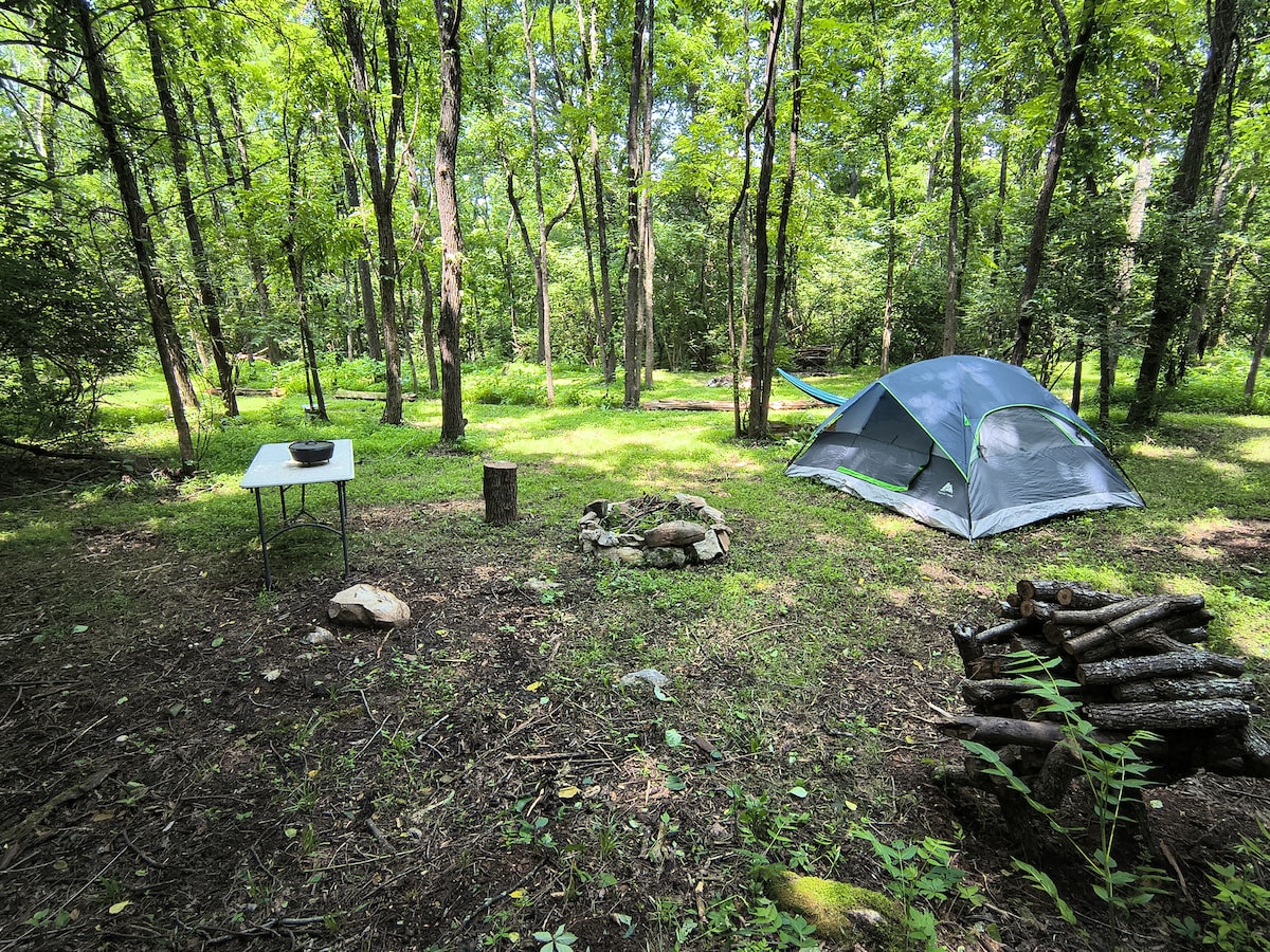 Détendez-vous et relaxez-vous en pleine nature. Votre tente privée, votre patio et votre espace barbecue donnent sur Spring Creek, une rivière pittoresque de l'État. Le site de la tente se trouve entre les chutes Upper et Lower Waterloo. Parfaite pour une escapade romantique, la tente dispose d'un lit queen size, d'un coin cuisine, de tables et de chaises pliantes. À l'exception de l'électricité et de l'eau chaude au pavillon, il s'agit d'une expérience hors réseau. Profitez de la vie sur la rivière et échappez au stress quotidien.