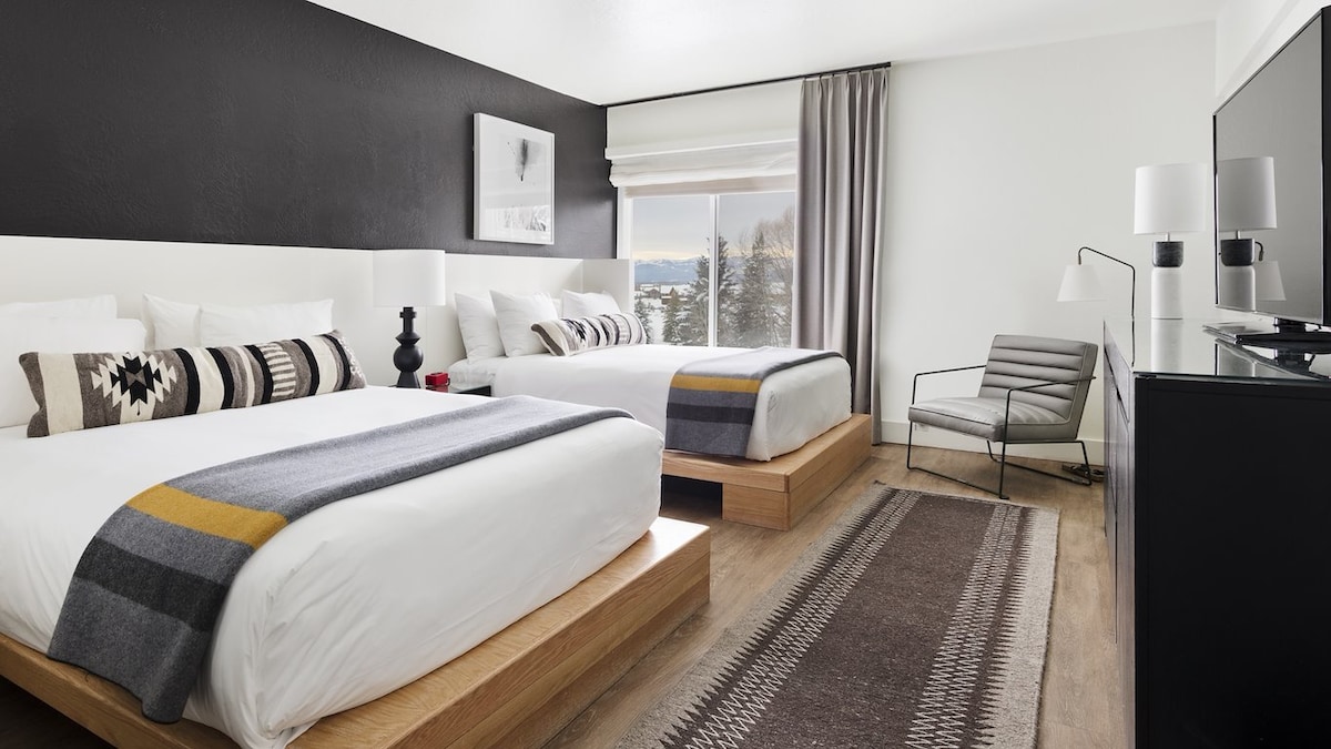 Séjournez au Virginian Lodge, votre camp de base à Jackson Hole, à quelques minutes de Town Square, de Snow King Mountain et du parc national de Grand Teton. Profitez de chambres rustiques-chic avec tout le confort moderne, d'une piscine extérieure chauffée, de deux jacuzzis, de foyers et de musique live dans le salon animé. Savourez des bouchées au restaurant sur place, sirotez des boissons artisanales dans la taverne ou détendez-vous dans le salon confortable après une journée d'aventure. Parfait pour les explorateurs, les familles et tous ceux qui ont envie d'une expérience authentique du Wyoming.