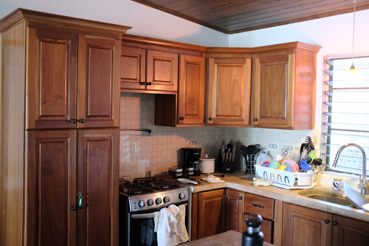 Profitez d'un logement élégant et central ! Cette maison récemment rénovée est située dans un quartier résidentiel sécurisé. Il faut sept minutes en voiture pour se rendre au centre commercial Galerias Santo Domingo, aux restaurants, aux supermarchés, aux pharmacies et bien plus encore. Il offre un hébergement privé et calme pour les vacanciers et les voyageurs d'affaires. Le logement dispose d'un lit King Size confortable, 1 lit Queen Size et 1 lit double. TV et climatisation, eau chaude, lave-linge et sèche-linge, espace de travail et une charmante cuisine.