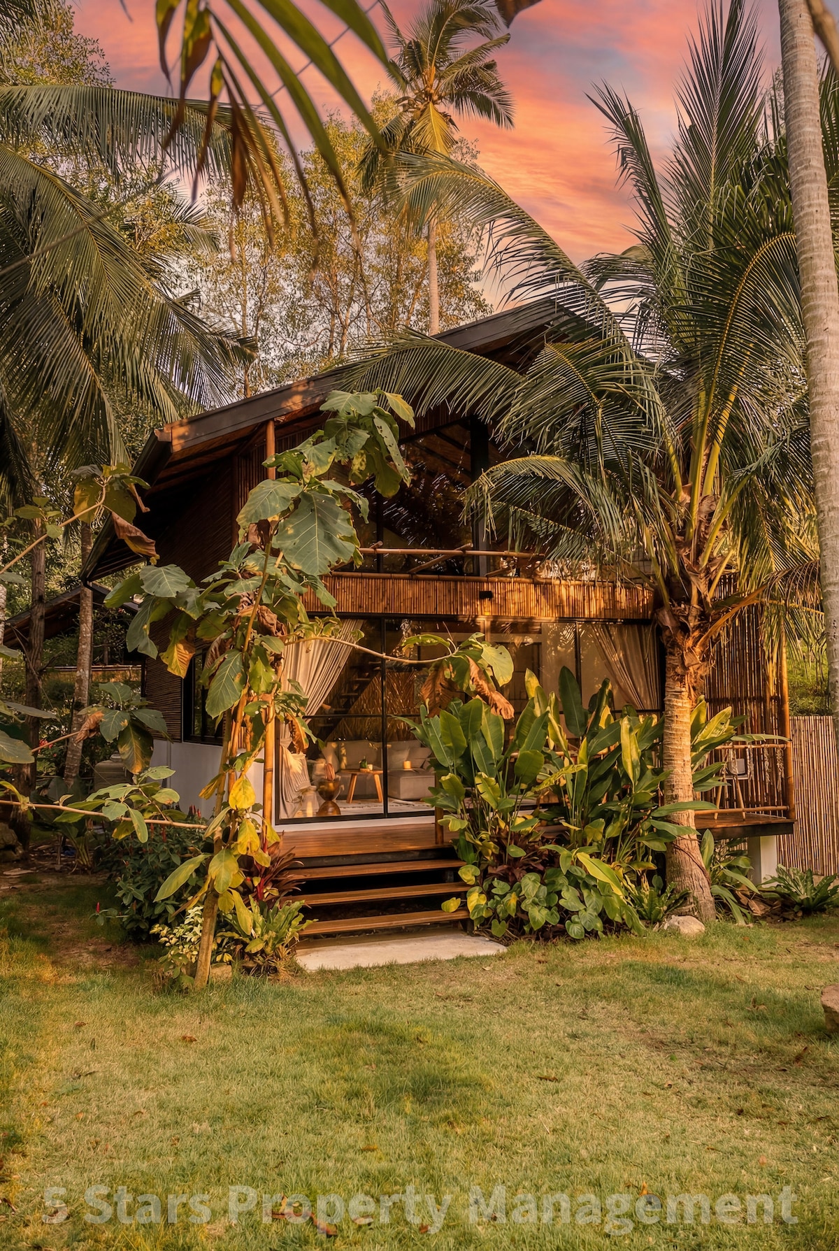 Escape to a pro-designed tropical loft where gigabit fiber meets jungle serenity. Perfect for remote workers craving focus without sacrificing island life. Wake in your bamboo-ceiling bedroom, brew espresso in the fully-equipped kitchen, then choose your workspace: sun-drenched desk inside or thatched-roof coworking pavilion by the pool. Steps from Chaloklum's authentic fishing village with fresh seafood and quiet beaches. Orthopedic mattress, weekly cleaning, concierge for adventures