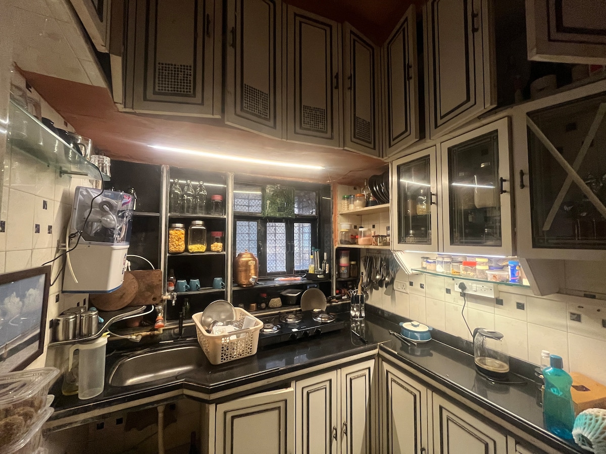 Un 1BHK soigneusement conçu dans un ancien bâtiment de Bombay qui vous fait vous sentir comme chez vous dès que vous entrez. Confortable, calme et confortable, cet espace est parfait pour les voyageurs en solo ou les couples qui cherchent à se détendre après une journée. Rempli de plantes et de chaleur naturelle, il est idéal pour les matinées tranquilles, les nuits reposantes et un séjour paisible.