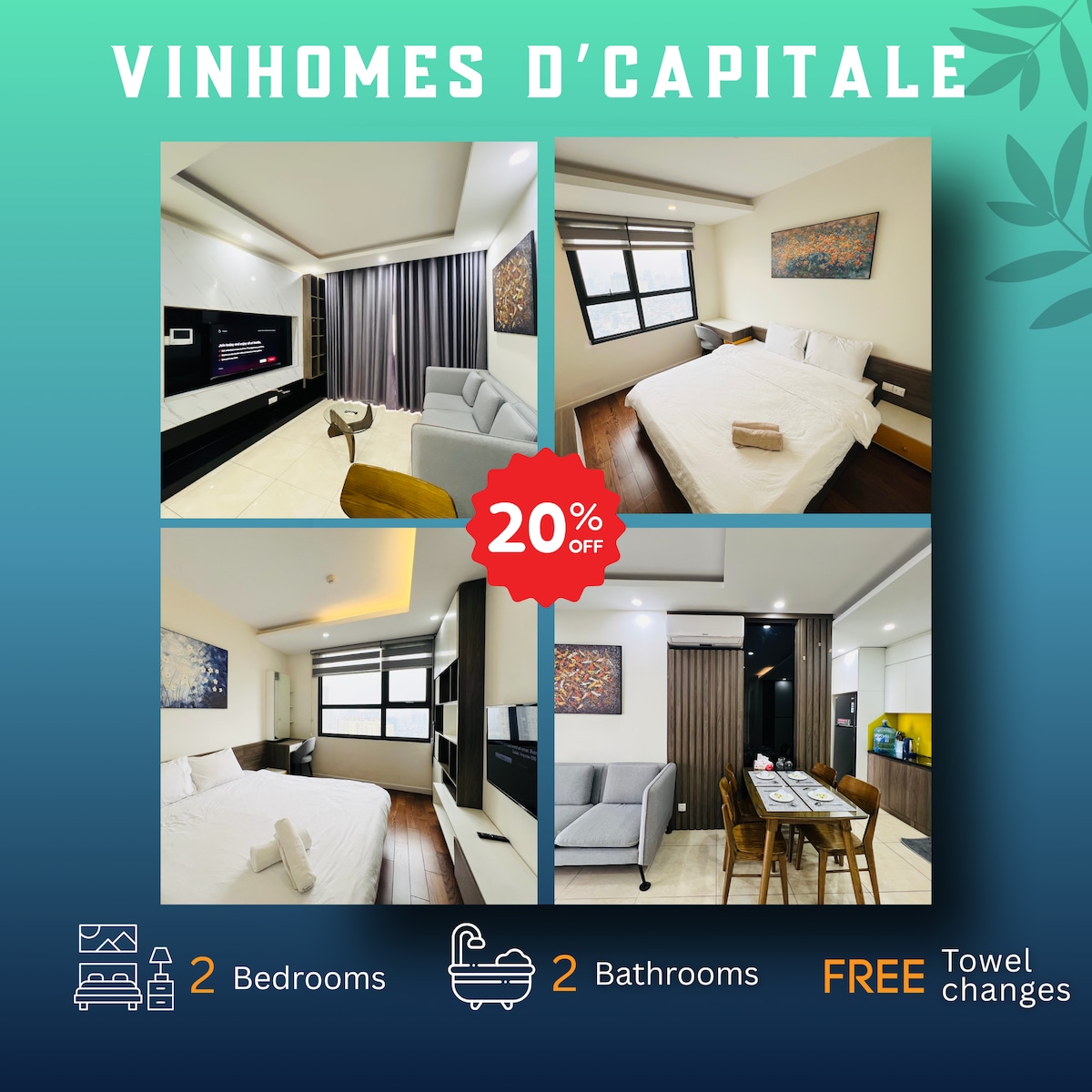 APPARTEMENT DE SERVICE À LOUER - VINHOMES D'CAPITALE ♪ Système d'appartements Vinhomes D'capitale, exploité avec des normes 5 étoiles, idéal pour de courtes vacances ou de longs voyages d'affaires.Vous avez l'usage complet de l'appartement de 3 chambres, 3 lits queen et 2 salles de bains.POURQUOI PAS UN HÔTEL ? ♪ Difficile de trouver confortable à l'hôtel, mais vous y trouverez. Commodités ici même : restaurants, cafés, cinémas, etc. à quelques pas, offrant une expérience de vie élégante et pratique.