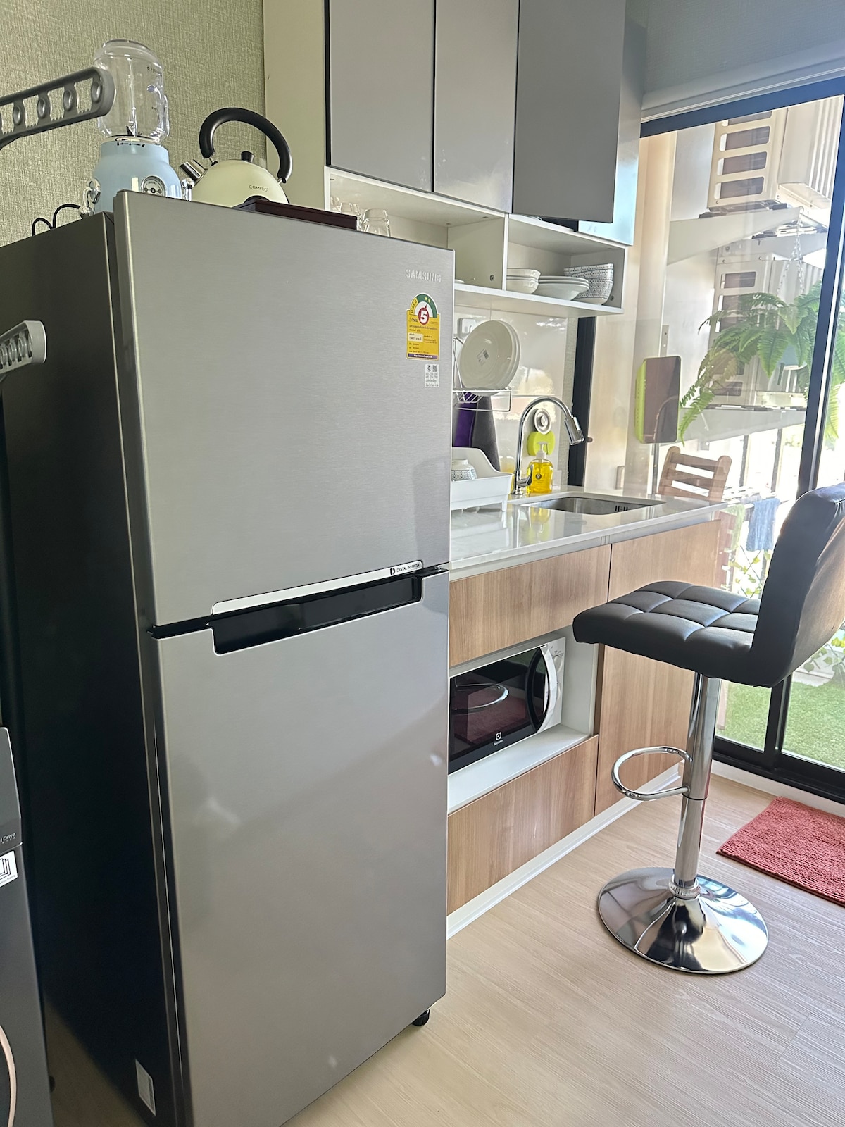 Bienvenue dans ce studio confortable de 22 m² au 6e étage avec balcon privé pour l'air frais et des moments calmes. Une porte coulissante sépare le coin nuit du garde-manger, de l'entrée et de la salle de bain, créant ainsi un espace paisible. Le studio comprend un petit garde-manger avec réfrigérateur, micro-ondes, bouilloire et cafetière. Situé près de l'aéroport DMK, des universités et d'un centre commercial, avec un accès facile au centre de Bangkok en bus, métro et taxi. Profitez de la cuisine de rue, des cafés et des magasins de proximité.