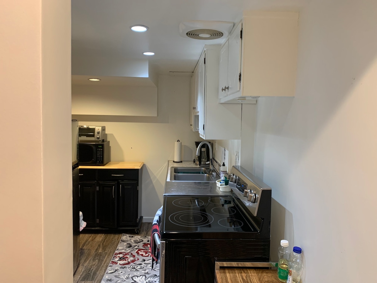 1 lit 1 salle de bain au sous-sol artistique lumineux avec entrée arrière privée (allée) dans le quartier urbain coloré d'Anacostia. Location de courte durée créée pour être votre logement loin de chez vous, quelle que soit la durée de votre séjour. Idéalement situé à 2 pâtés de maisons de plusieurs arrêts de bus, à 1 mile de la station de métro Anacostia et à 10 minutes en voiture du centre-ville de DC. Peut accueillir jusqu'à 5 personnes, mais le plus optimal pour 2 personnes. (À partir du 13 juillet, le logement ne sera disponible que pour un maximum de 4 personnes car le canapé futon jaune sera retiré.)