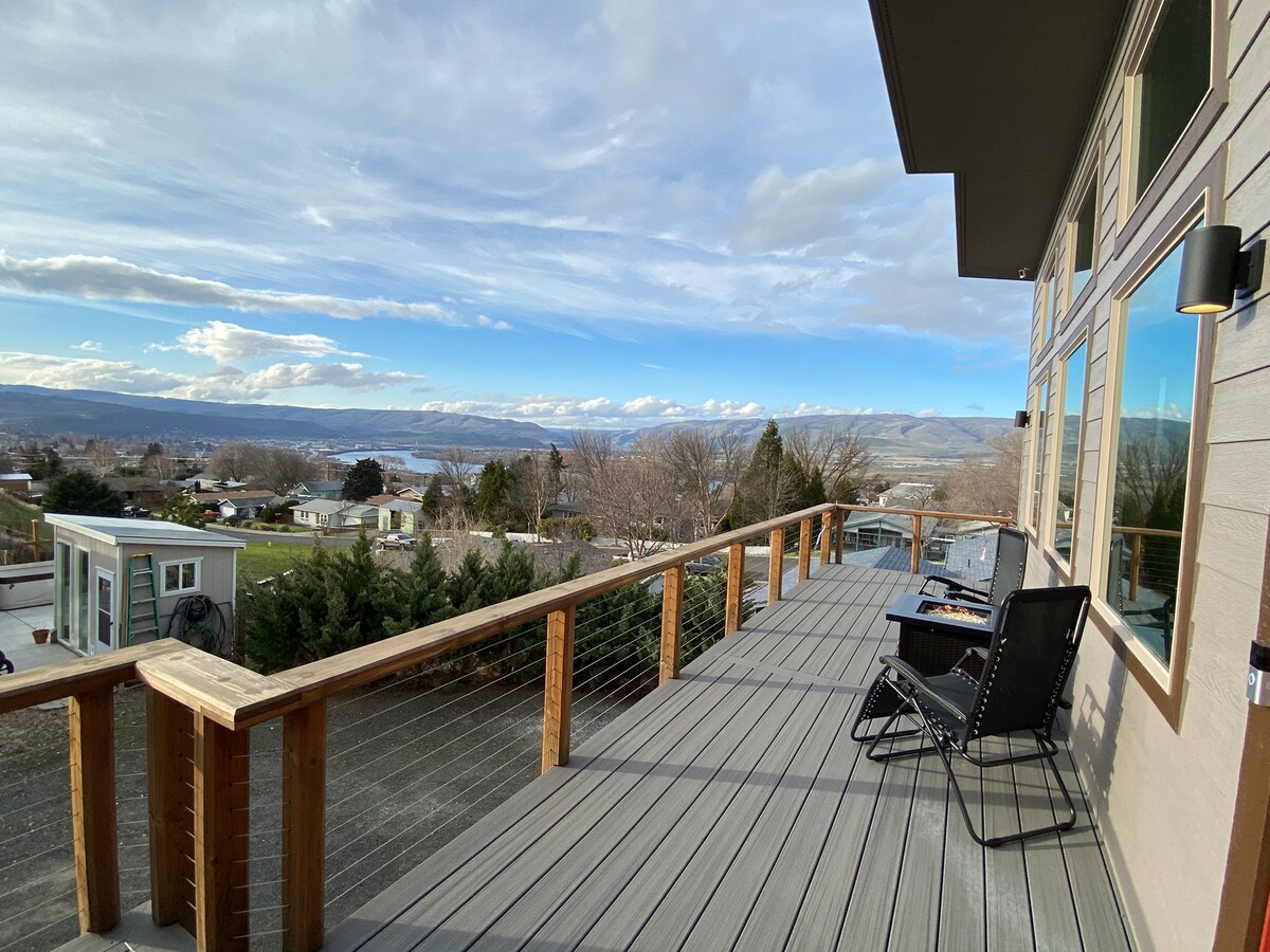 Nous vous invitons à profiter de notre maison paisible nouvellement construite surplombant les gorges du Columbia. Le patio offre une belle vue diurne sur les gorges du Columbia et les montagnes ainsi qu'une vue nocturne scintillante sur la ville. Ce coin de paradis est situé dans The Gorge à proximité de restaurants, de brasseries, de randonnées, de pêche, de rafting et de kitesurf. À 5 minutes de tout en ville. Tout est de plain-pied avec accès facile aux douches. Veuillez noter qu'il y a une allée raide pour accéder à notre rue.
