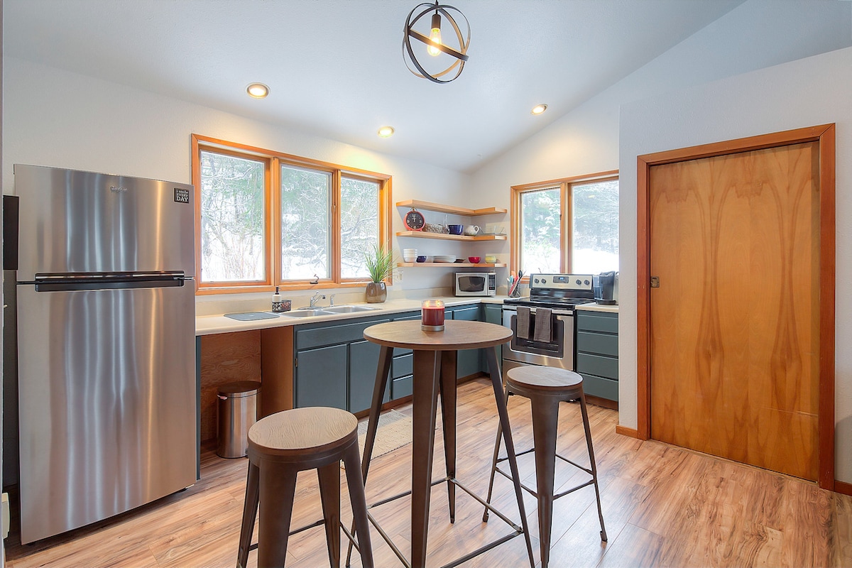 La bouée ! Nichée au cœur de Juneau, cette cabane confortable est entourée de grands pins et de baies sauvages. Le cadre rénové des années 80 2bd/1ba présente une esthétique chaleureuse et accueillante. Conçu avec soin pour les voyageurs, l'intérieur lumineux vous accueille avec des œuvres accrocheuses d'artistes de l'Alaska et des touches chaleureuses. Un mobilier confortable, une cuisine bien équipée et un cadre paisible vous font vous sentir comme chez vous. Détendez-vous dans le sauna en cèdre, parfait après une journée d'aventure !
