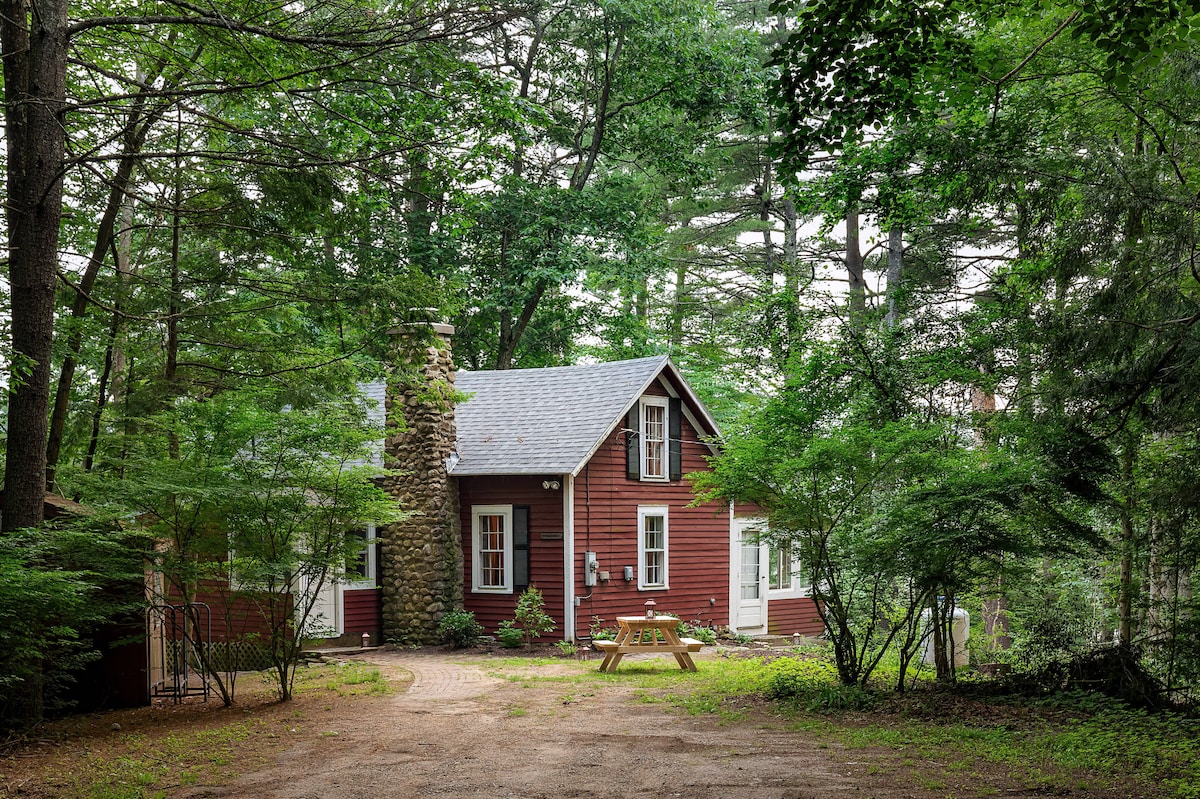 Ancien cottage sur une ferme becountry avec des hectares de champs, d'étangs, de forêts et de ruisseaux, attenant au domaine du réservoir de Quabbin. Idéale pour les randonneurs, les ornithologues et les cyclistes, cette retraite tranquille à la campagne offre des sentiers et des terrains à explorer, à seulement 3 miles de la petite ville historique de la Nouvelle-Angleterre. Installez-vous comme chez vous dans la maison de poteau confortablement meublée avec vue sur la terrasse et l'étang, aventure dans les environs, plongez dans les ruisseaux d'eau douce et détendez-vous dans la baignoire à griffes