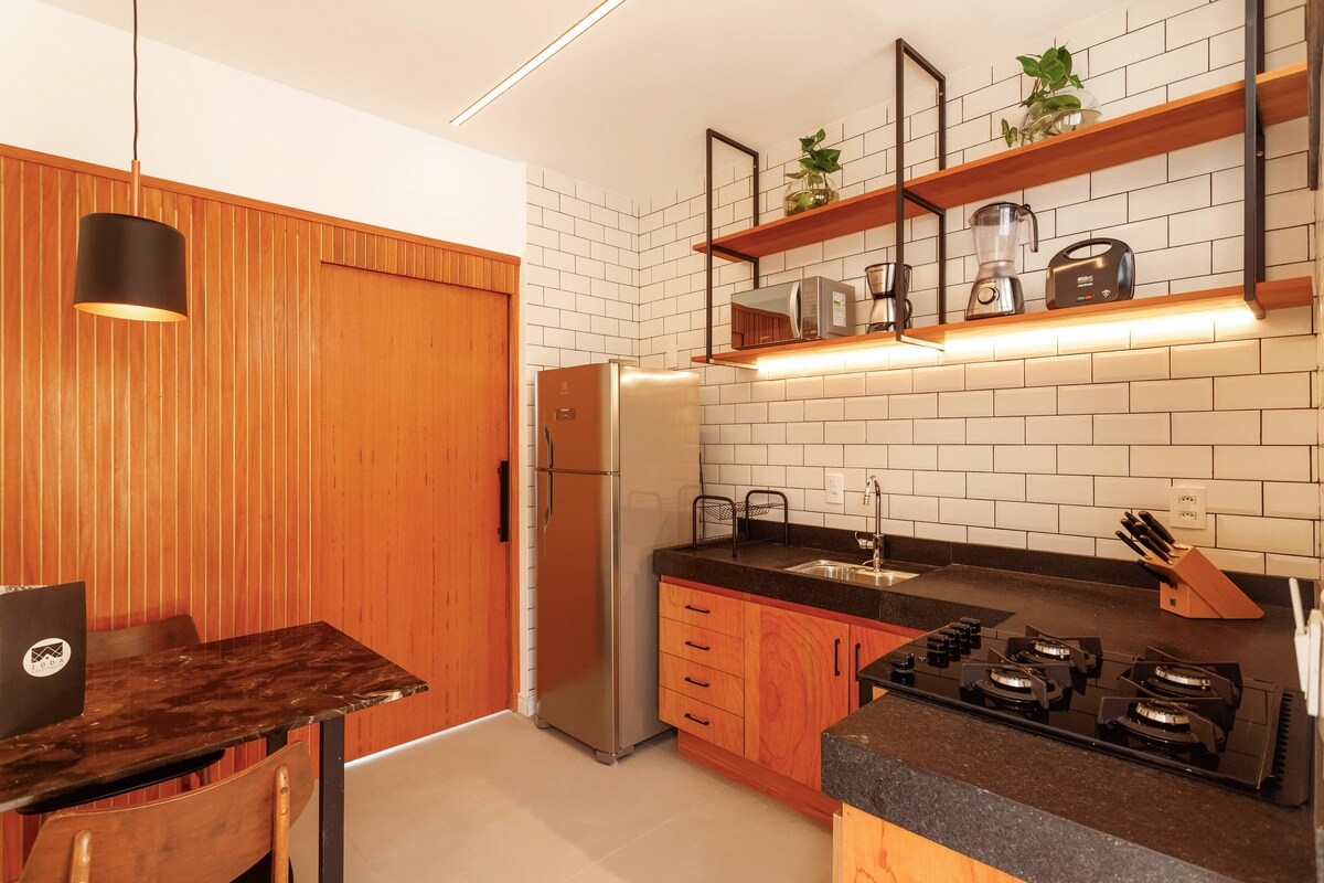 ✨ Votre expérience à Arraial do Cabo commence ici ! ✨ Notre suite a été soigneusement conçue pour offrir confort, praticité et une touche de charme balnéaire. 🌴 Il dispose d'une cuisine adaptable équipée d'un four à micro-ondes, d'un minibar, d'une machine à sandwich et d'ustensiles essentiels pour les petits repas. La chambre dispose de la climatisation, d'une télévision, d'une salle de bain attenante et d'un espace multifonctionnel idéal pour dîner ou travailler. Tout est conçu pour rendre votre séjour inoubliable dans le paradis d'Arraial do Cabo ! 💙