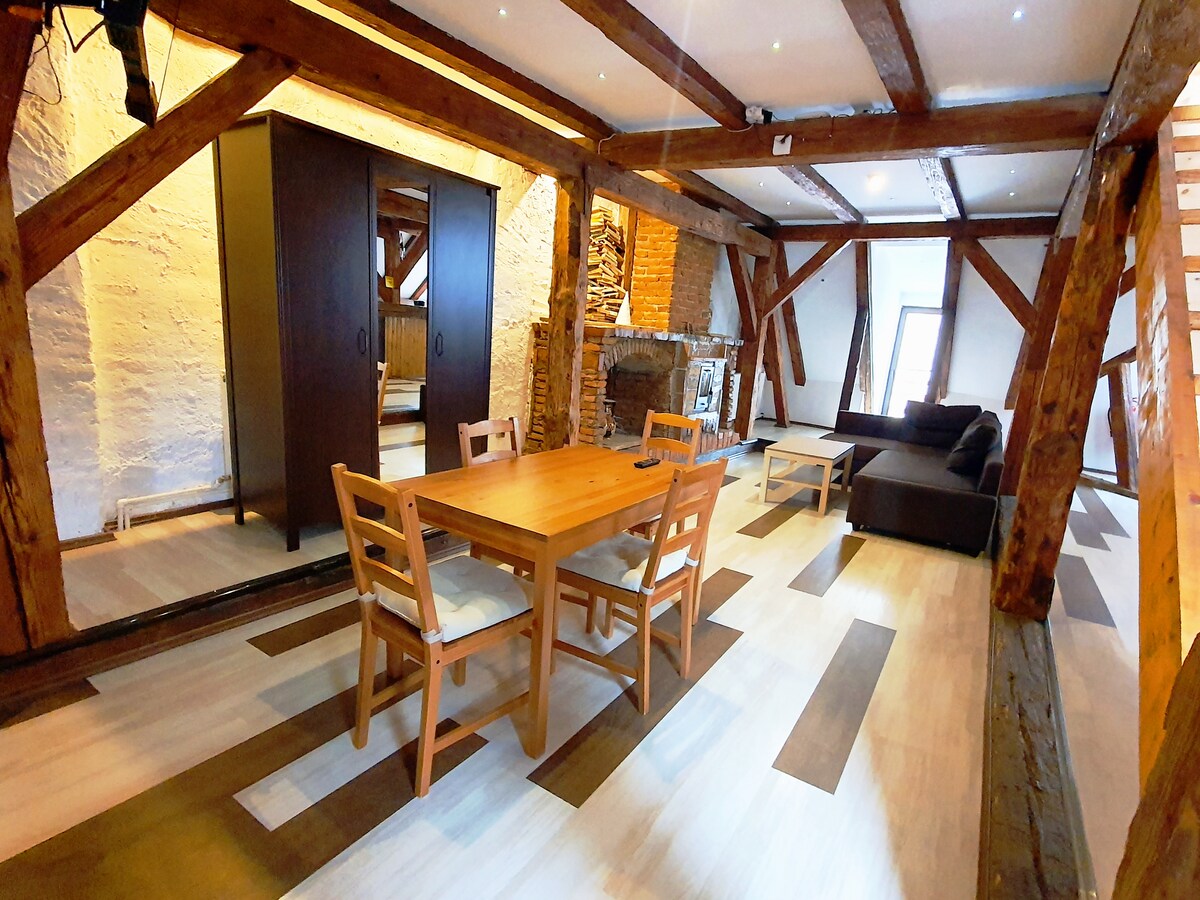 Situé à la frontière de la vieille ville et de la forêt, notre petit studio offre un accès facile au bourdonnement de la vieille ville mais aussi à la tranquillité de la forêt et de la faune entourant la maison. Le studio est situé dans un manoir historique construit par une famille saxonne au début du 20e siècle. En conservant les éléments originaux de la maison, comme la cheminée et pas seulement, notre studio est également équipé de tout le nécessaire pour rendre votre séjour facile et agréable.