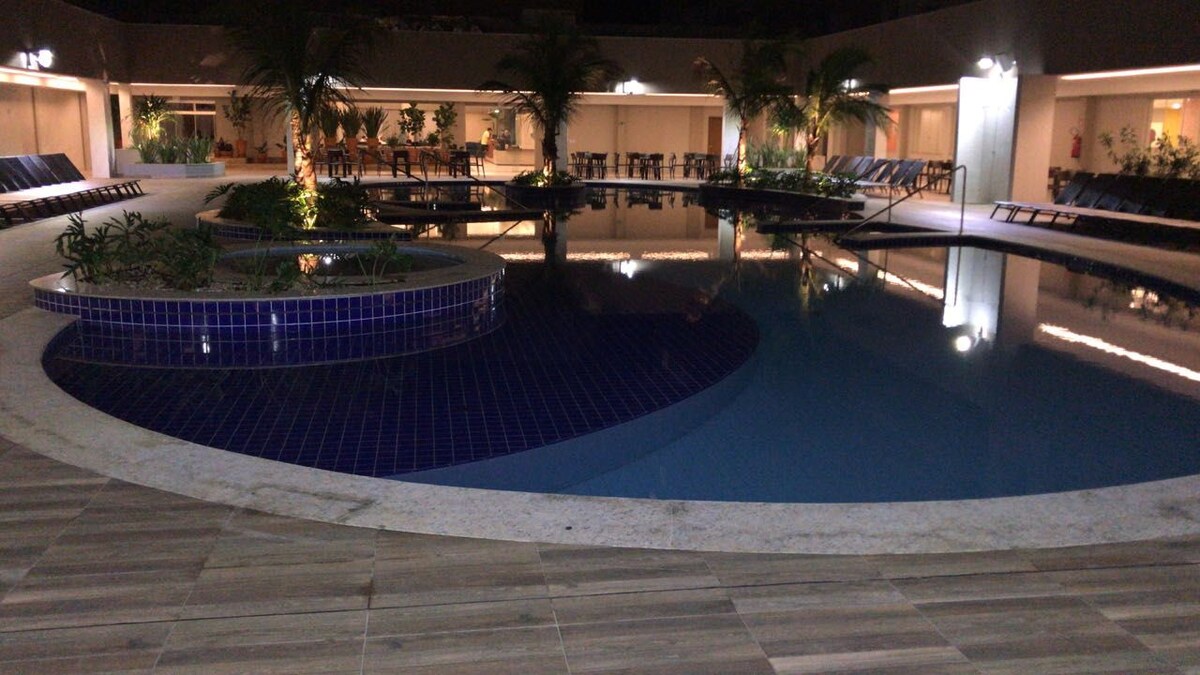 Appartement à côté de Thermas dos Laranjais à Olímpia avec cuisine Salle de séjour ouverte et cuisine américaine, chambre avec lit double, lit simple, lit supplémentaire et canapé-lit dans le salon. excellent pour toute la famille, service hôtelier, piscines chauffées, piscines climatisées et piscine froide avec bar humide. saunas, parc aquatique, salle de jeux, aire de jeux, mini-golf, terrain multisports, activités de cirque, court de beach tennis, restaurants, bars, moniteurs, transfert aux thermes