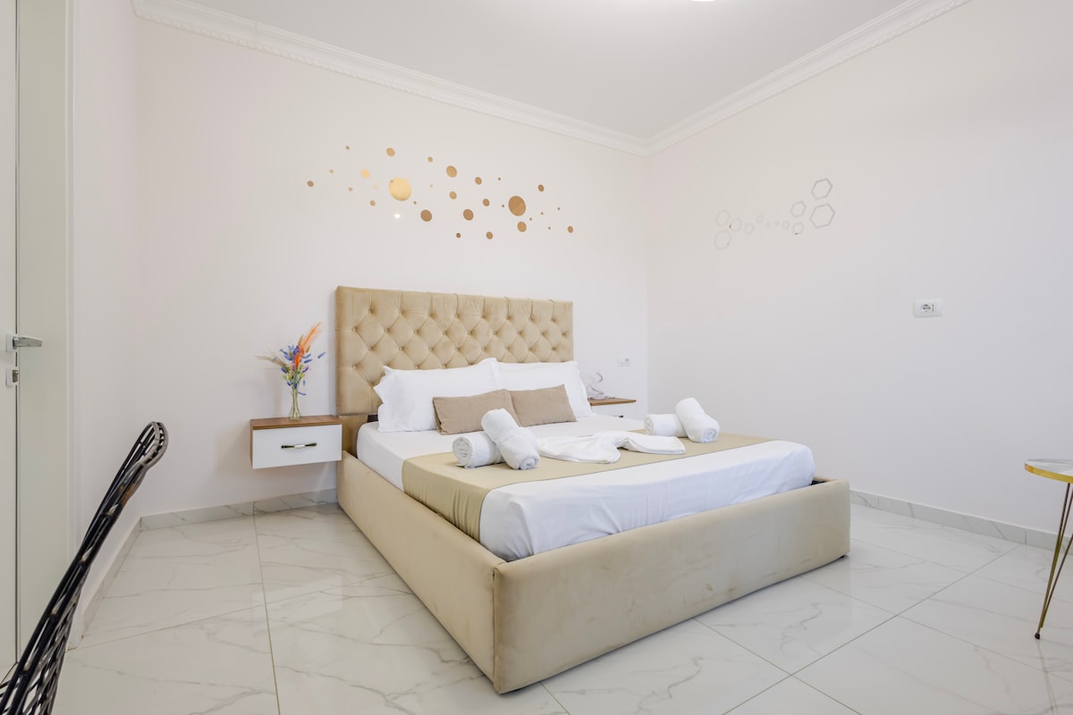 Elegant Serenity in the Heart of Ksamil Welcome to your sanctuary in Ksamil, where modern sophistication meets tranquil comfort. This meticulously designed suite offers a blend of luxury and practicality, featuring sleek contemporary furnishings complemented by warm, inviting tones. Our clients can use the hotel pool for free. The pool is seasonal, open from 01.06 - 30.09. We also have free parking.
