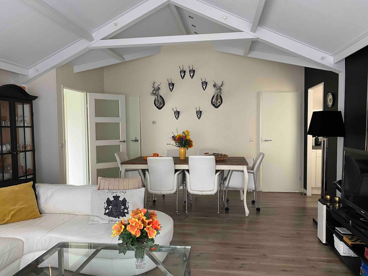 Bienvenue au Lodge de Zélande, notre chalet familial de 50 m² à Sint-Annaland ! Idéal pour un couple ± enfants. Village ultra calme. Supermarché & aire de jeux à 1 km, plage à 200 m. Sans services hôteliers : location entre particuliers. Apportez draps, essuies & produits ménagers. Ménage départ à votre charge (matériel fourni). Taxes de séjour incluses dans le tarif. Possibilité de louer des vélos ou scooter électriques à la réception. Petit sauna électrique 2 pers disponible dans l'annexe.
