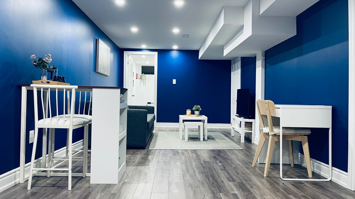 Découvrez la tranquillité au Blue Basement, votre retraite idéale pour les affaires ou les loisirs. Récemment rénové, spacieux et impeccable, il offre tous les équipements dont vous avez besoin. À 5 min en voiture de la gare Go pour des aventures au centre-ville et à quelques minutes en voiture de l'autoroute 400. Explorez plus de 20 restaurants à moins de 15-20 minutes à pied (2 km), offrant un mélange parfait de commodité et de confort. Les joyaux à proximité incluent Walmart, Shoppers, Tim Hortons et Starbucks. Bienvenue dans votre havre de commodité et de style !