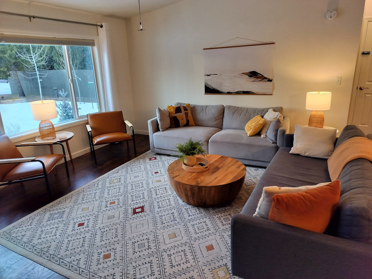 Une maison de plain-pied moderne et confortable. Cuisine rénovée qui s'ouvre sur un espace de vie confortable et accueillant. Les chambres sont équipées de lits, d'oreillers et de literie confortables pour que vous soyez sûr de passer une bonne nuit. Le poêle à bois vous gardera au chaud et confortable tout en regardant vos émissions préférées sur Netflix, Prime ou DirectTV (télévision en direct). 6 passes SHARC, 2 vélos pour adultes, 2 vélos et trottinettes pour enfants. De nombreux équipements pour les enfants et un espace de travail dédié en font l'endroit idéal pour votre prochaine escapade.