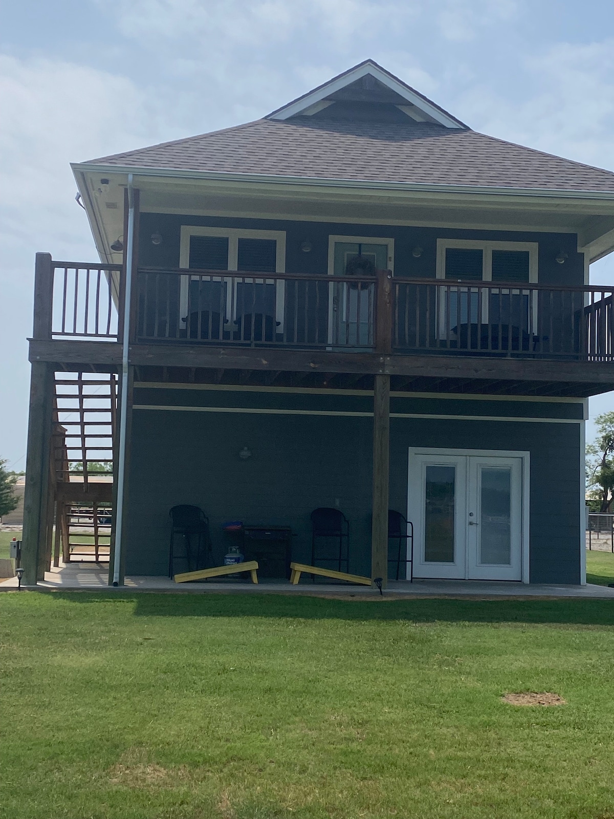 Située sur une route rurale calme à seulement 7 miles au nord de Stephenville, cette maison récemment rénovée est sur un étang et a une superficie boisée. Le large porche côté étang est pittoresque et idéal pour une utilisation matinale et nocturne. La propriété se trouve à un mile du centre de rodéo de l'Université d'État de Tarleton et à proximité du ranch Melody Mountain. Les deux chambres du premier étage disposent chacune d'un lit King Size. Il y a un lit Queen Size dans la chambre à l'étage et un lit gigogne dans le loft. Le rez-de-chaussée est entièrement accessible aux personnes à mobilité réduite.