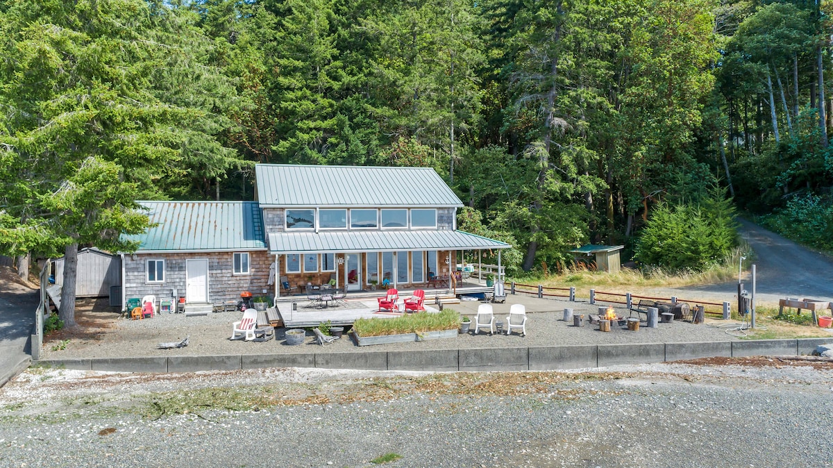 Maison de style cabane en bord de mer avec un plan d'étage ouvert. Situé directement (pêche depuis le pont à marée haute) sur l'époustouflante crique Skookum sur le détroit de Puget. Votre séjour à « Kravitz-Port » vous offre une vue au niveau de la mer sur une ferme ostréicole du Nord-Ouest. L'entrée est un refuge faunique pour les phoques, les aigles, les loutres, etc. Tous peuvent être aperçus dans leur habitat naturel pendant que vous êtes assis sur le pont avec une vue panoramique à 90 degrés sur le front de mer. Apercevez la sérénité de n'importe quel endroit où vous vous reposez à Kravitz-Port, à l'intérieur ou à l'extérieur de la maison.