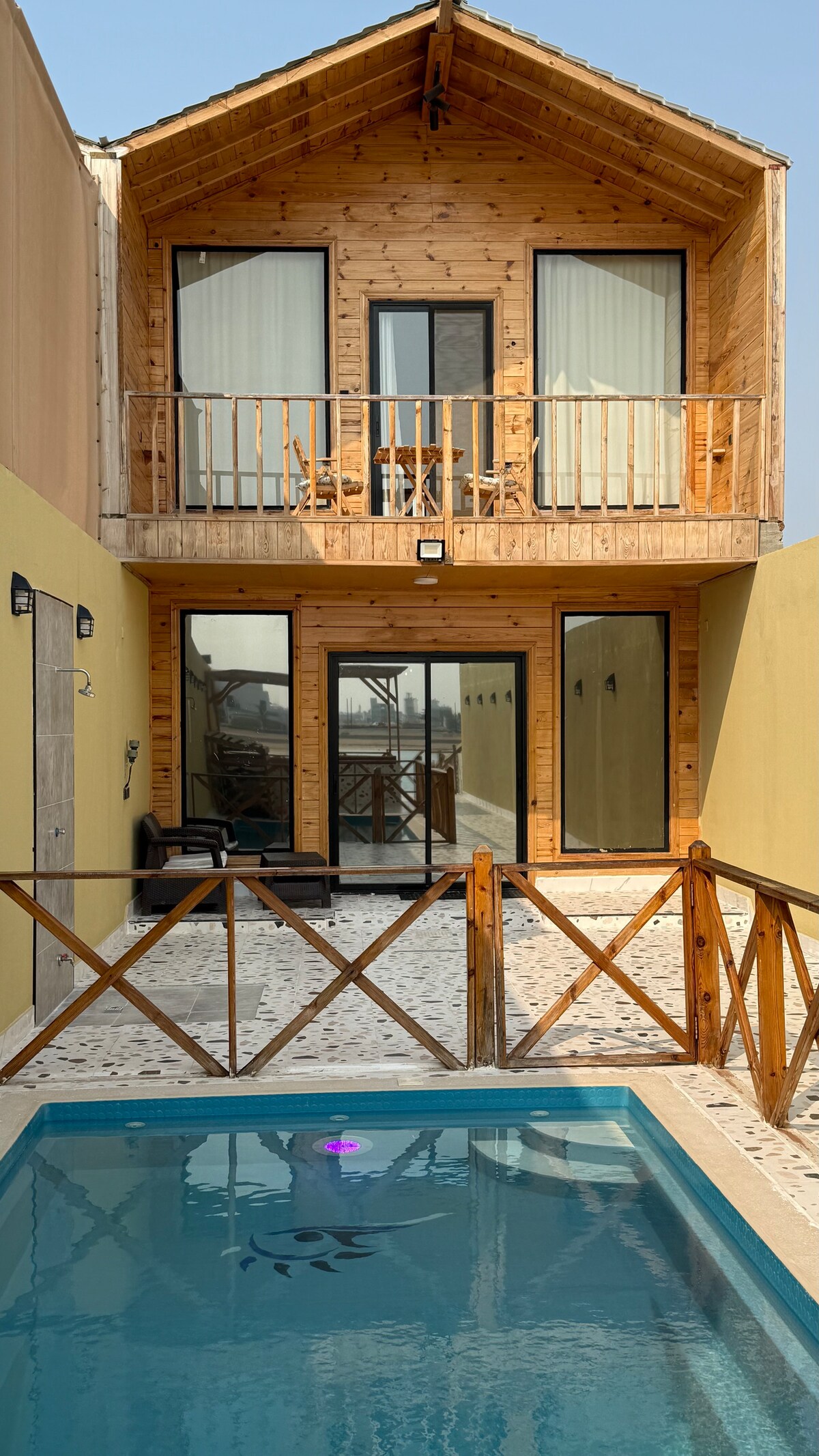 Le chalet de luxe situé à Al Hamra Beach, à Badra Al Arous, offre une vue directe sur la mer et la plage, avec un balcon privé pour profiter du coucher du soleil et de la brise marine dans un cadre calme et unique. Le chalet dispose de 3 chambres confortables (dont une chambre principale avec salle de bain privée), de 3 salles de bain élégantes, d’un salon spacieux avec vue sur la mer et d’une salle de jeux électroniques avec télévision intelligente connectée à Internet. Il dispose également d’un écran QLED 65 pouces, d’un système audio professionnel, d’une connexion Internet 5G rapide, d’une cuisine entièrement équipée avec un bar élégant et une table à manger pour 8 personnes, d’un coin salon intérieur et d’un balcon extérieur donnant sur la plage, ainsi que d’un accès intelligent.