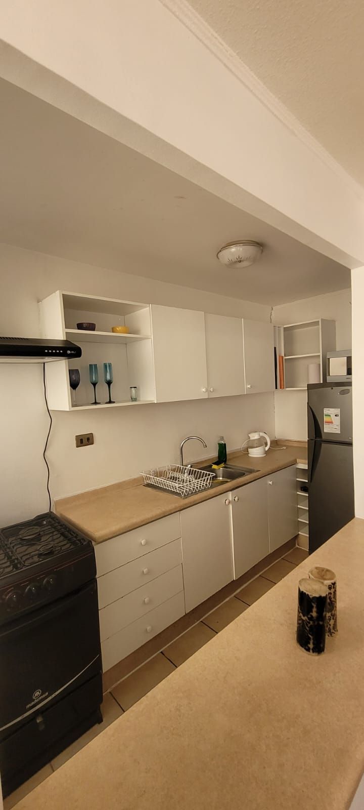 Departamento para 3 personas, ideal para una estancia de trabajo o descansar mientras vamos de paso Cocina amoblada Una habitación con cama de dos plazas y televisor, otra habitación pequeña con cama de una plaza Sala pequeña con Smart TV con varias aplicaciones para pasar el rato, Wifi, Estacionamiento Supermercado Jumbo a dos cuadras Casino a pocos minutos El departamento cuenta con lavadora de ropa Flexibilidad de entrada o salida si el calendario lo permite Factura para empresas