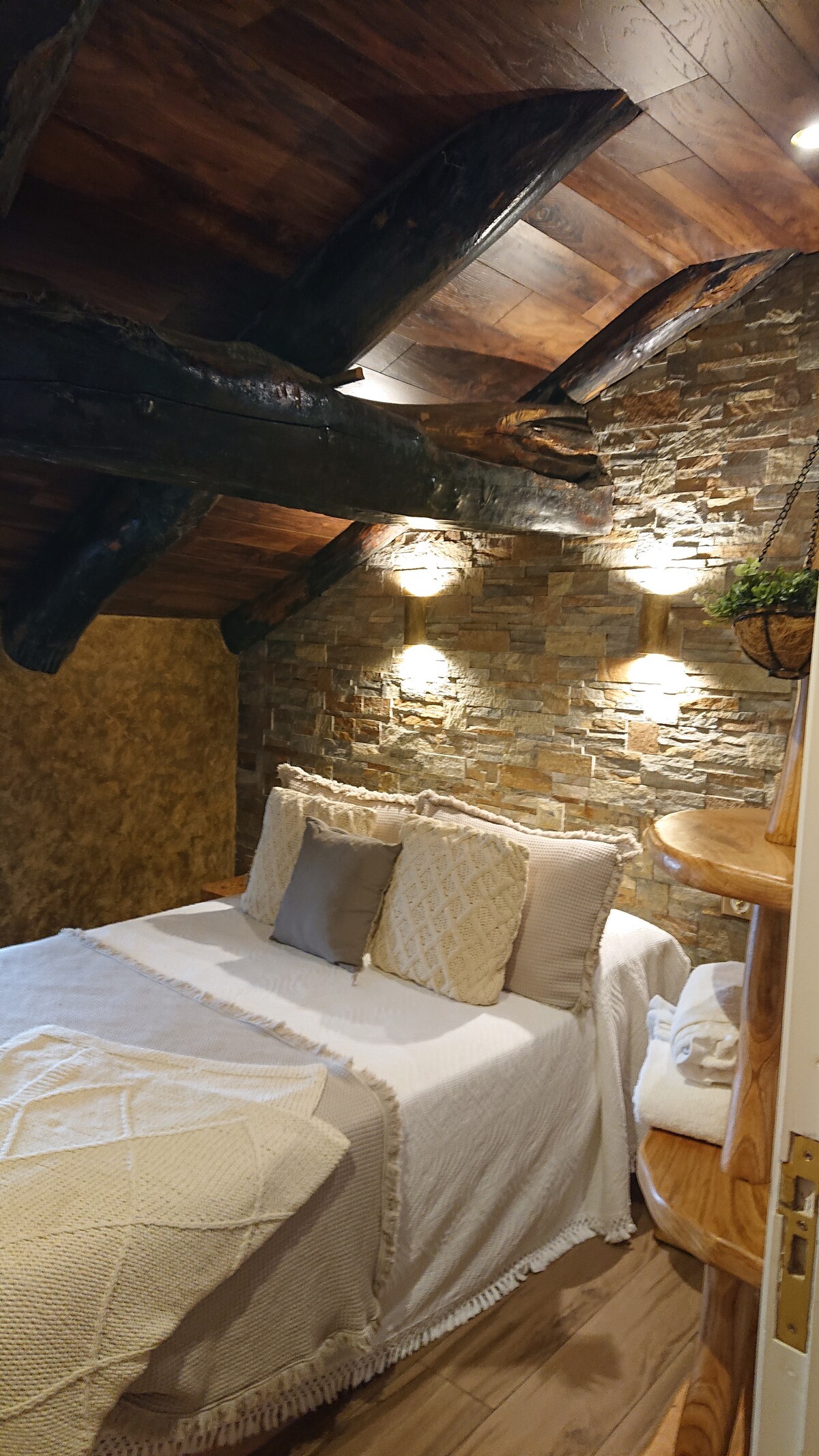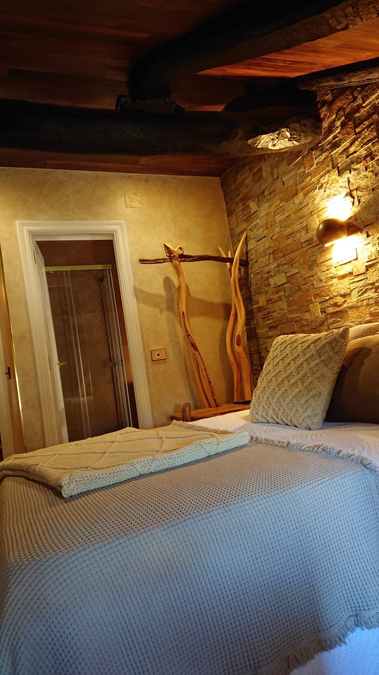 Chambre d'hôtel de charme, de deux lits et salle de bain privée extérieure, à un mètre de la chambre et à l'usage exclusif de celle-ci. Elle est située au cœur d'O Cebreiro, soignée dans les moindres détails.