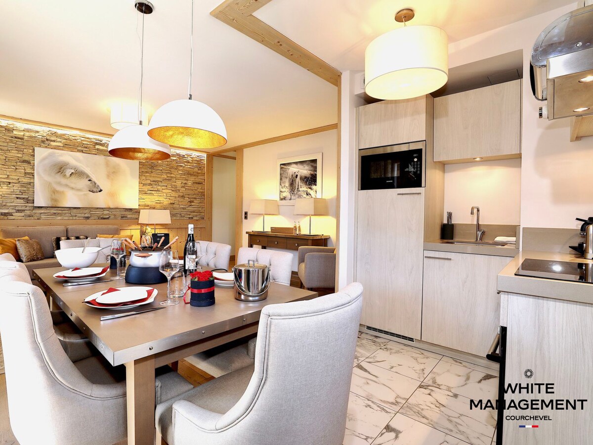 Ce magnifique appartement, entièrement rénové pour 5 à 7 personnes dans un esprit chalet de prestige, situé dans la résidence 5* Les Sources de Marie incluant le SPA privé DEEP NATURE, propose des prestations rares et uniques au village. Vous bénéficierez gratuitement de toutes les installations de la résidence (fitness, sauna, et jacuzzi), et vous aurez accès aux installations de la résidence Auberge Jérôme (piscine et jacuzzi extérieurs chauffés, Hammam, Sauna et salle de sport).