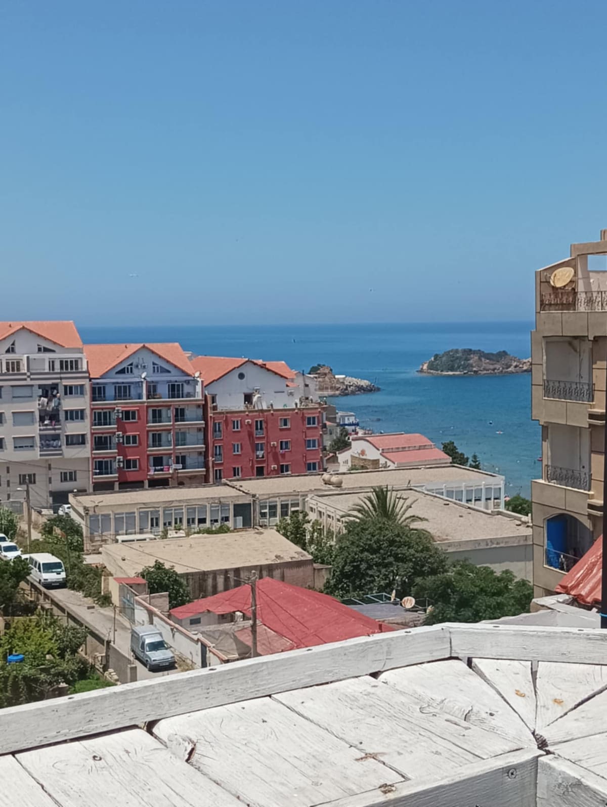 Appartement Duplex à Tigzirt - 120 m2 proche plage. Chaleureux duplex de 120m2 au 4e étage situé à Tigzirt, idéal pour des vacances en famille ou entre amis. Entièrement rénové, équipé et tout confort ! A seulement 5 min à pied de la Grande Plage de Tigzirt et du Port de Plaisance. Description du logement : - Pièce à vivre de 35m2 - Capacité 6 couchages (possibilité d'avoir un lit supplémentaire à la demande). - Terrasse de 30m2 avec vue sur mer