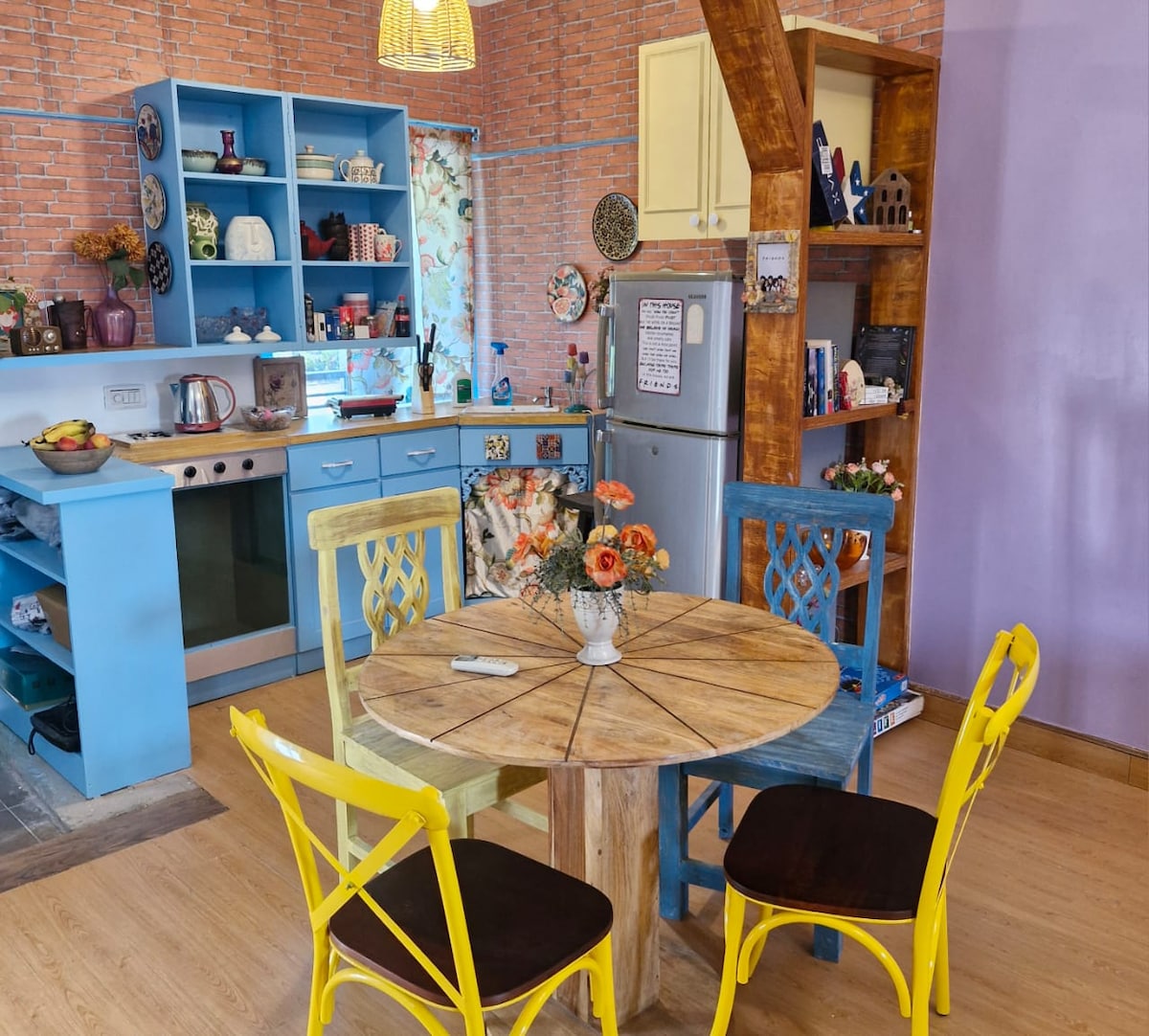 India’s first-ever FRIENDS TV Series-themed homestay!! A replica of Monica's apartment from the iconic TV Series. Think Monica’s kitchen, purple living room, the iconic yellow frame, bedroom with the Russian painting, a foosball table and a whole lotta nostalgia! TOTALLY INSTA-WORTHY The same iconic Friends apartment, with vintage flair, cozy corners & vibrant pops of purple. Step into the Greek-themed terrace overlooking the lush golf course with have a rooftop Jacuzzi (Rs 750 extra).