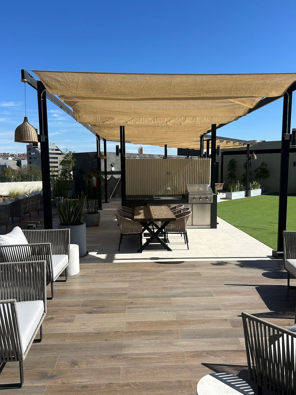 Élégant loft avec murs en béton, poutres en acier et finitions en bois et une atmosphère botanique peignant un style frais et industriel. Dans la chambre, profitez d'une vue imprenable sur la rue la plus historique de Tijuana. Monte sur le toit pour profiter d'un concert et de la vue sur les rues à côté d'un feu de camp. Sécurité 24 h/24 et 7 j/7 et accès uniquement par carte. Découvrez l'emplacement le plus central de Tijuana où les cliniques, les supermarchés, les bars, les restaurants et les cafés sont à moins de 5 minutes à pied.