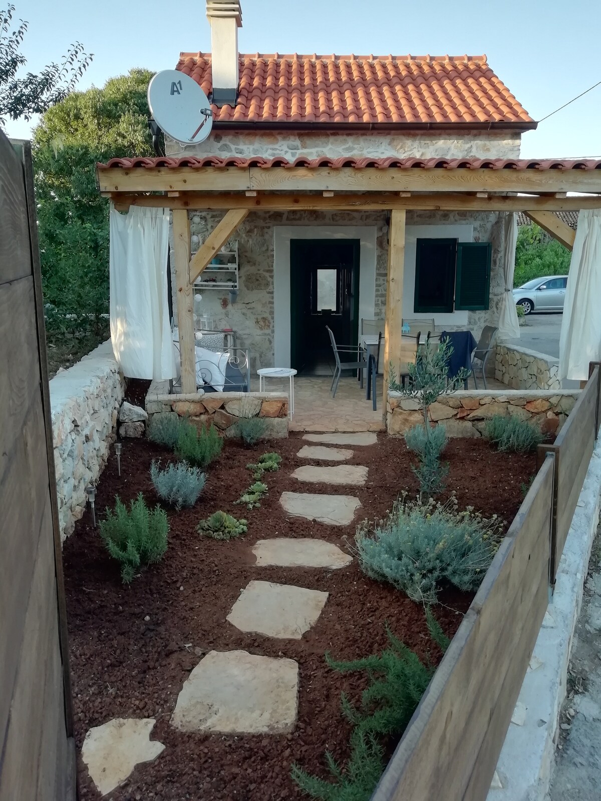 Belle petite maison dalmate en pierre, située dans une oasis d'oliviers et de champs fertiles. La maison est mêlée à la nature et à l'utilisation des ressources de la nature du ruisseau (panneaux solaires) et de l'eau (eau de pluie). La maison est idéale pour des vacances actives, calme et sans bruit, la circulation, les voisins et l'Internet. Les clients peuvent utiliser la cheminée où ils peuvent profiter d'une variété de spécialités de grillades.