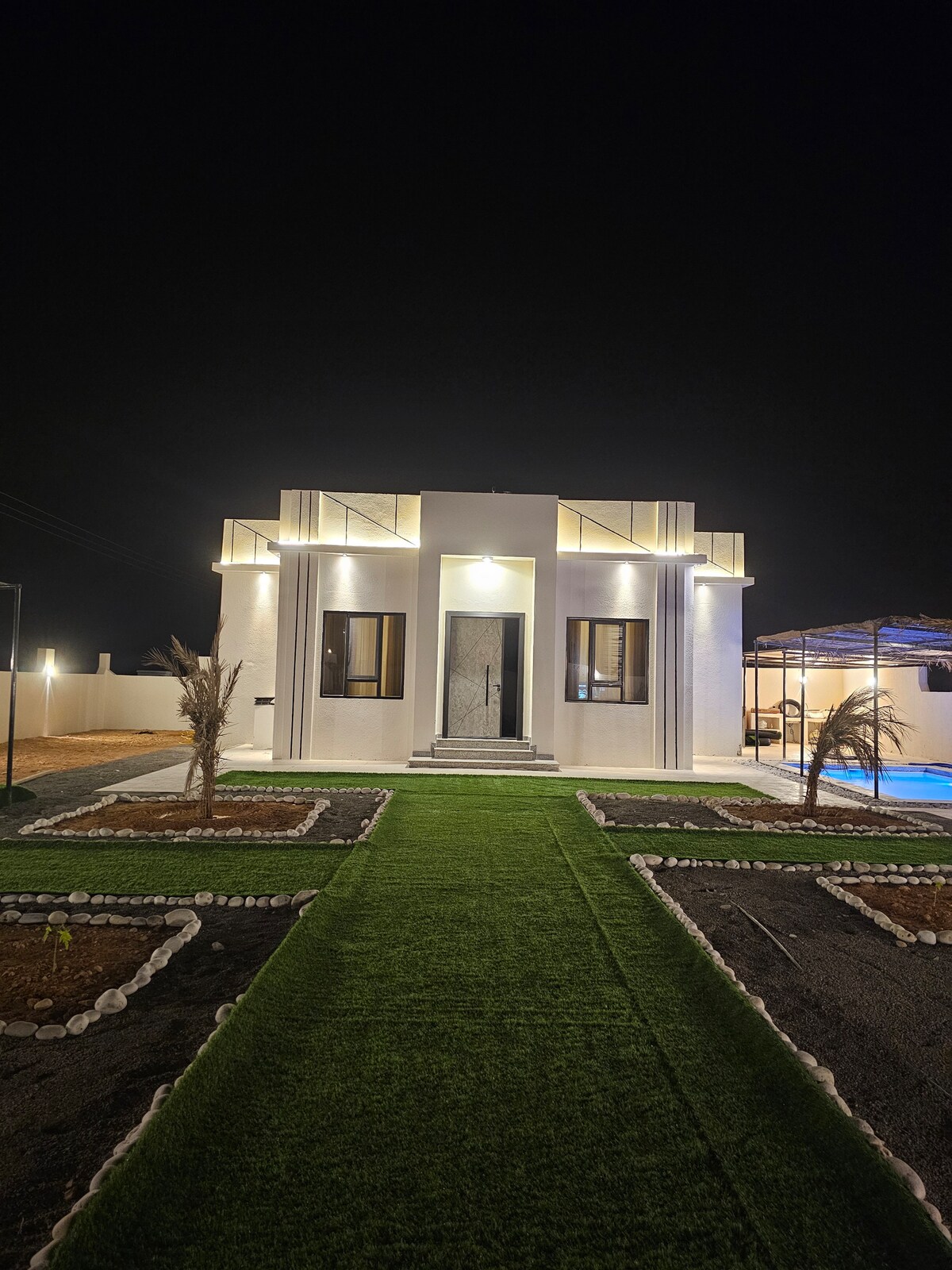 Araek House est une location privée pour les couples et un enfant, située près de la plage à Bimmah, Oman. Il offre un cadre paisible et romantique, parfait pour une escapade relaxante. La maison est à environ 85–100 kilomètres (1 à 1,5 heure) de Mascate, offrant une évasion pratique de la ville. La piscine dispose d'un jacuzzi et d'un chauffe-eau.