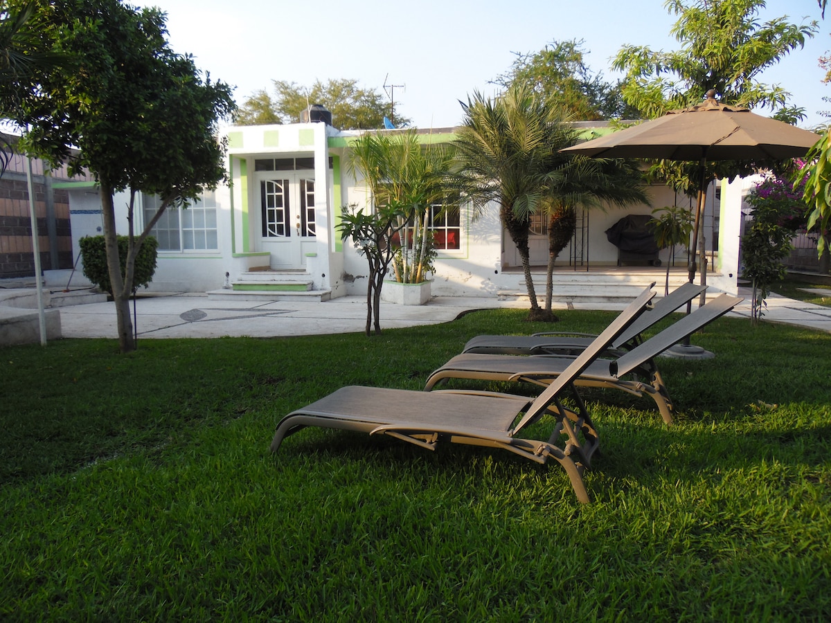 Maison idéale pour un week-end avec votre famille : 3 chambres avec lits doubles et ventilateur de tour c/u, piscine, cuisine, salon, salle à manger, espace aquatique avec toboggans le dimanche. Excellent emplacement, entouré d'endroits amusants : lac de Tequesquitengo, jardins du Mexique, aéroport de parachutisme, spas. Cet endroit est devenu un centre touristique très actif compte tenu de son climat chaud et de son accès facile à des destinations spectaculaires pour des vacances en descente ou à l'aventure.